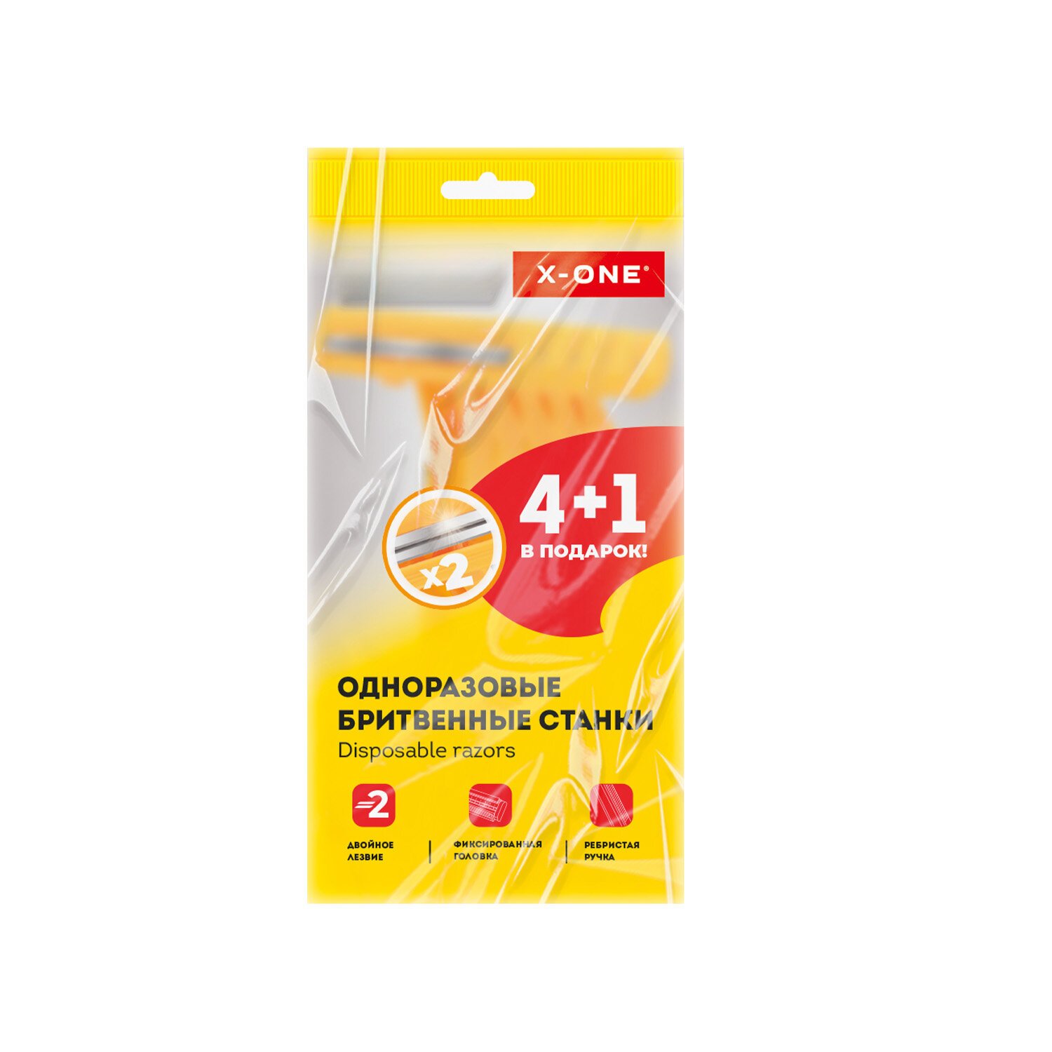 Бритвенные станки одноразовые, 2 лезвия, фиксированная головка, 5 штук, желтый, X-ONE, 700026