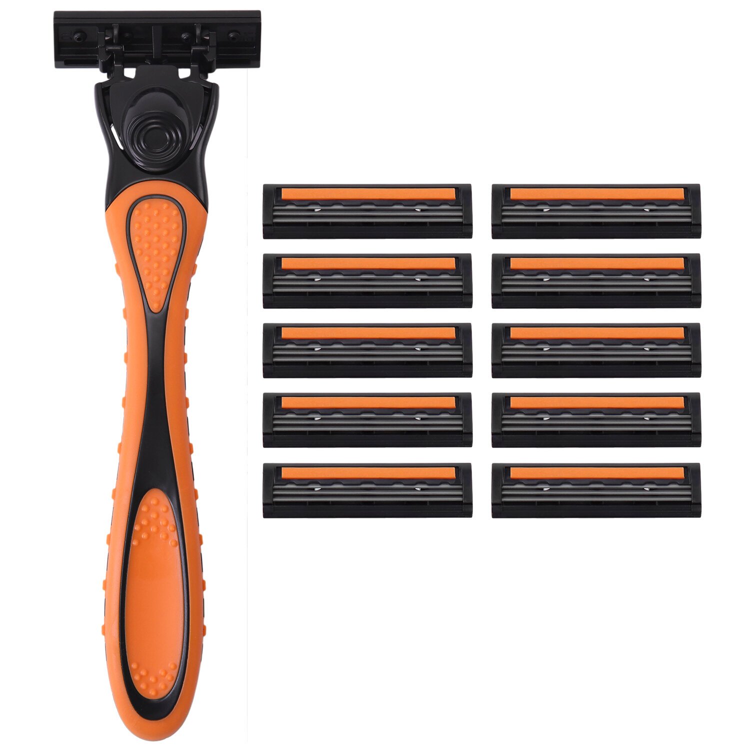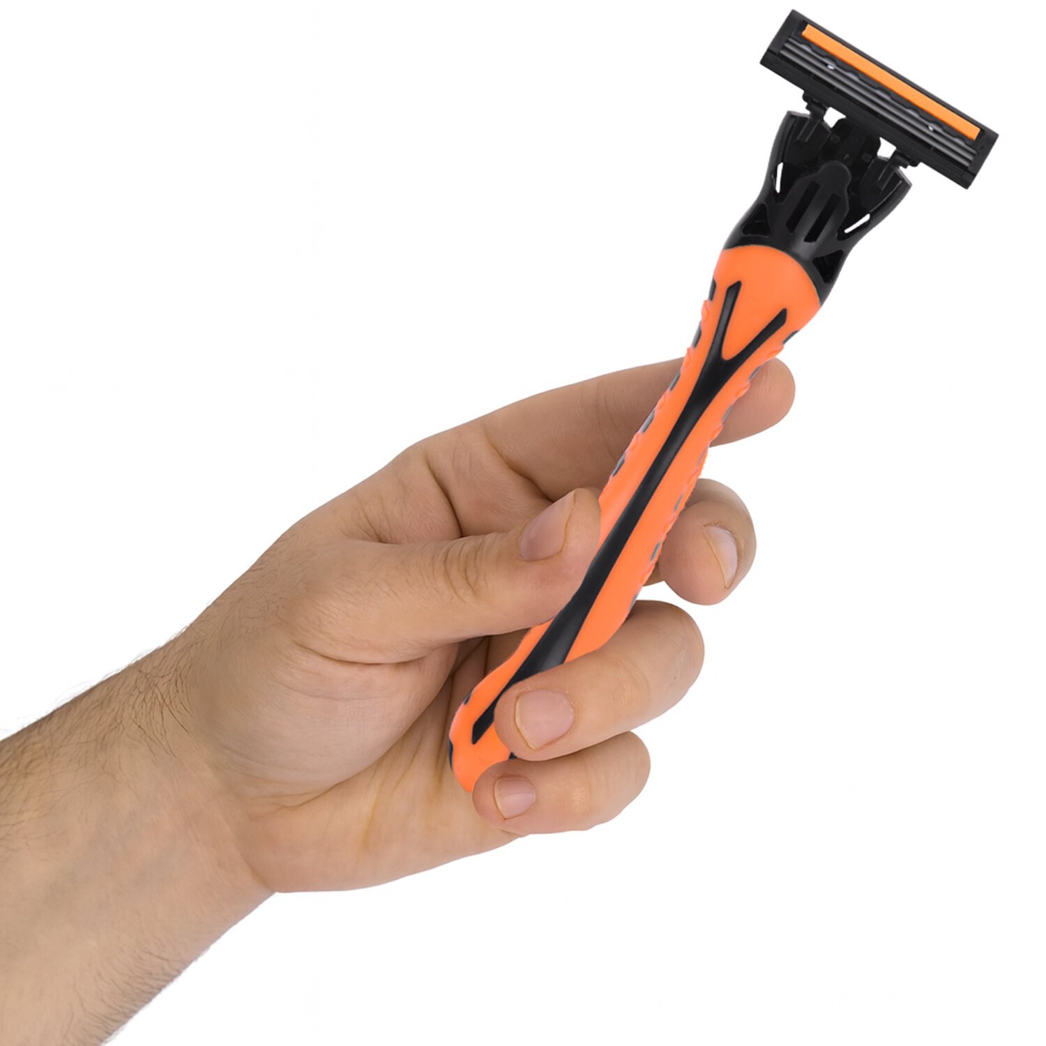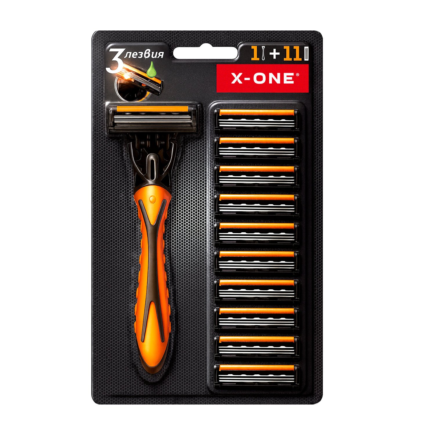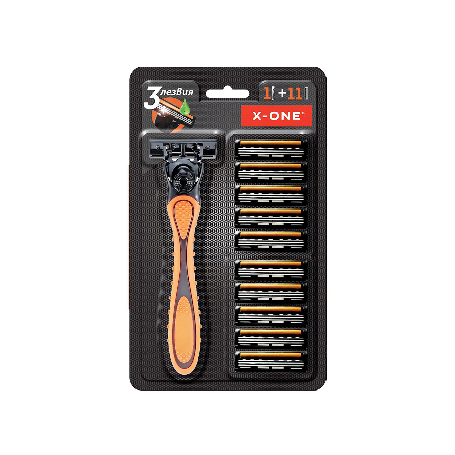 Бритвенный станок многоразовый мужcкой, 3 лезвия, 11 кассет, оранжевый, X-ONE, 700023