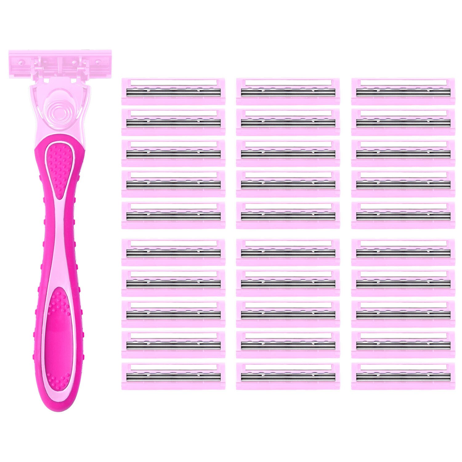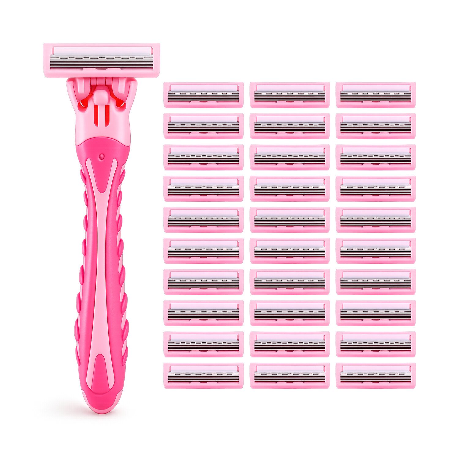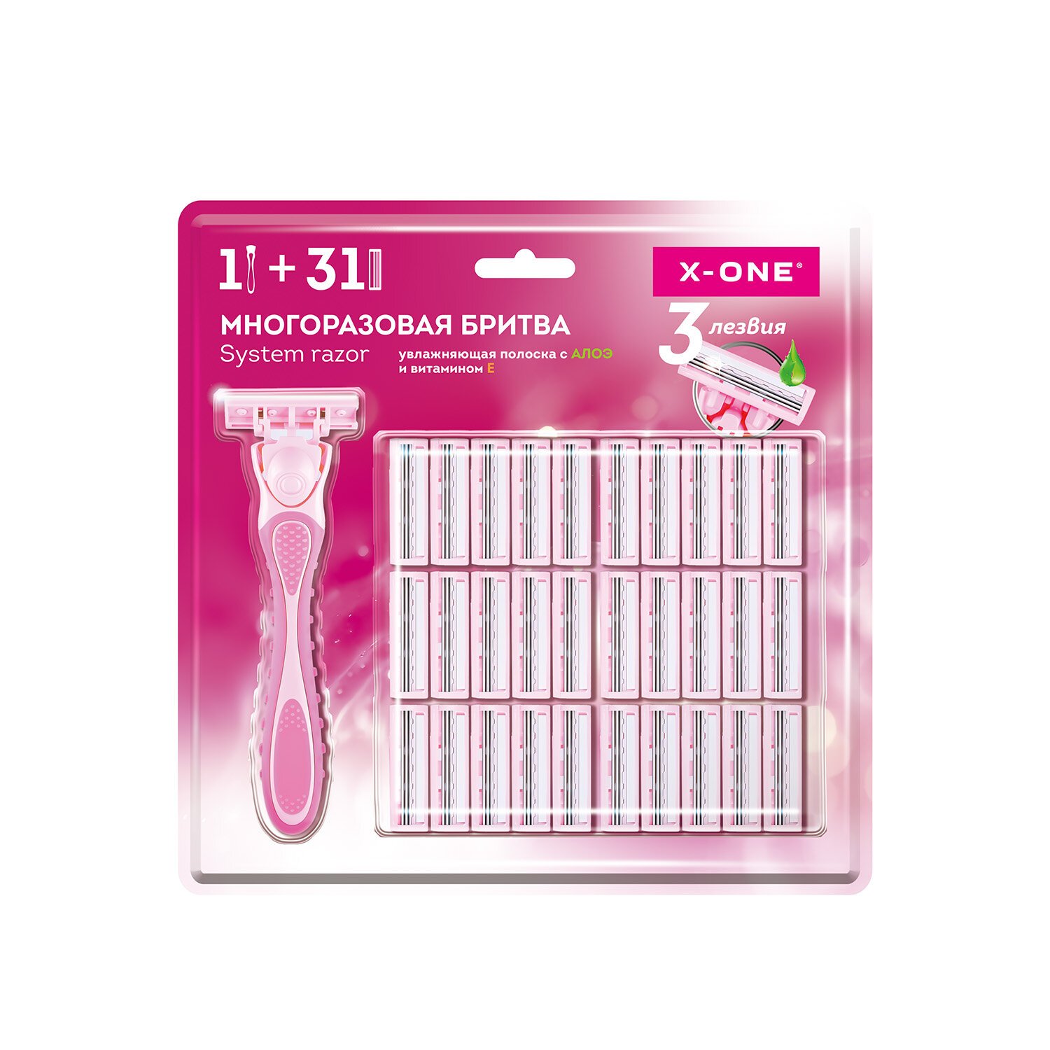 Бритвенный станок многоразовый женский, 3 лезвия, 31 кассета, розовый, X-ONE, 700025