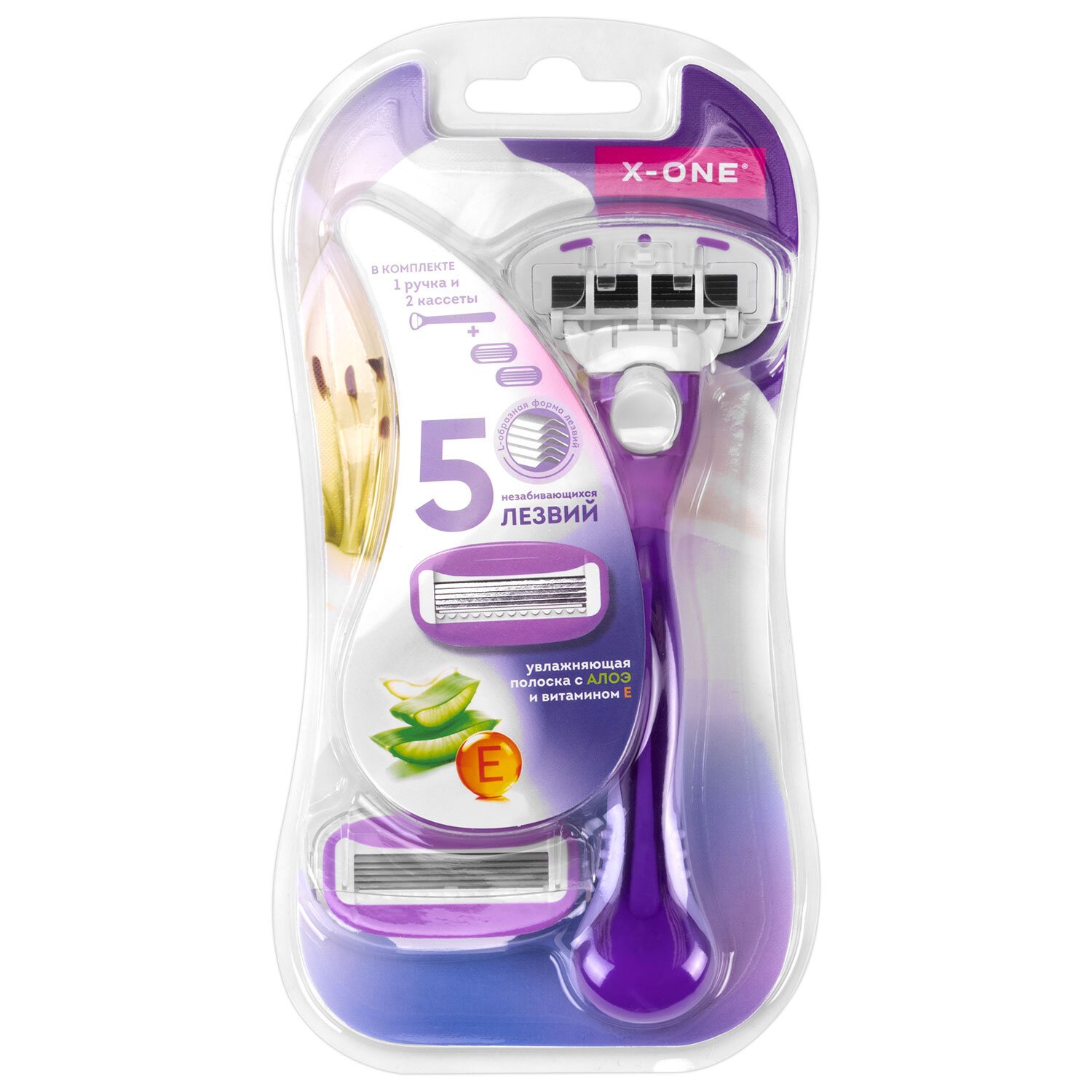 Бритвенный станок многоразовый женский, 5 лезвий, 2 кассеты, X-ONE, 700020