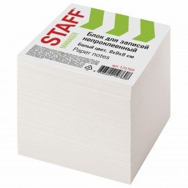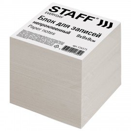 Блок для записей STAFF проклеенный, куб 9х9х9 см, белый, белизна 90-92%, 129204