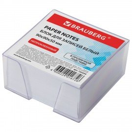 Блок для записей BRAUBERG в подставке прозрачной, куб 9х9х9 см, белый, белизна 95-98%, 122223