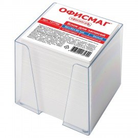 Блок для записей ОФИСМАГ в подставке прозрачной, куб 9х9х9 см, белый, белизна 95-98%, 127798