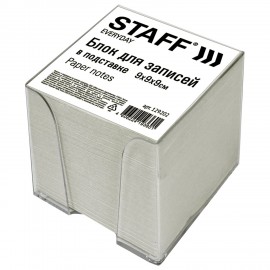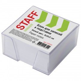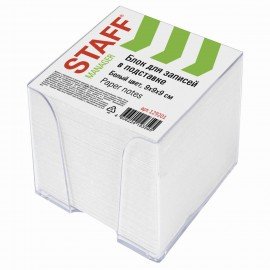 Блок для записей STAFF в подставке прозрачной, куб 9х9х9 см, белый, белизна 90-92%, 129201