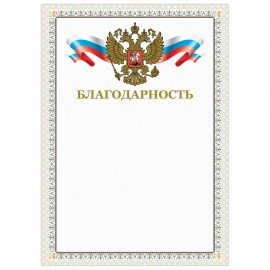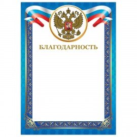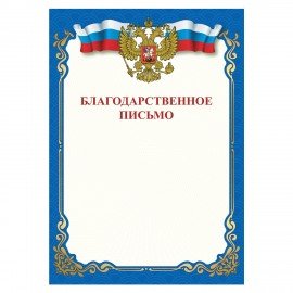 Грамота "Благодарственное письмо", A4, мелованная бумага 115 г/м2, для лазерных принтеров, синяя, STAFF, 111800