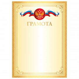 Грамота А4, мелованный картон, конгрев, тиснение фольгой, золотая, BRAUBERG, 117530