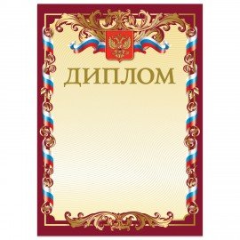 Грамота "Диплом" А4, мелованный картон, конгрев, тиснение фольгой, золотая, BRAUBERG, 123059