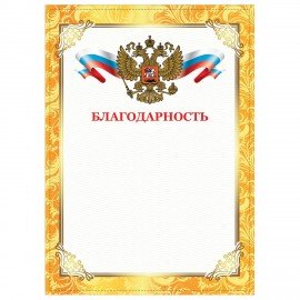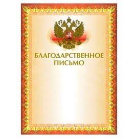 Грамота "Благодарственное письмо" А4, мелованный картон, конгрев, тиснение фольгой, желтая, BRAUBERG, 123060