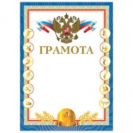 Грамота "Спортивная", A4, мелованная бумага 115 г/м2, для лазерных принтеров, синяя, STAFF, 111803