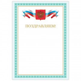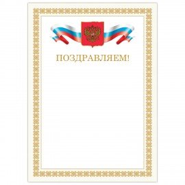 Грамота "Поздравляем", А4, мелованный картон, бронза, бежевая рамка, BRAUBERG, 128365
