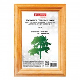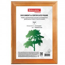 Рамка 15х20 см, дерево, багет 18 мм, BRAUBERG "HIT", канадская сосна, стекло, подставка, 390020