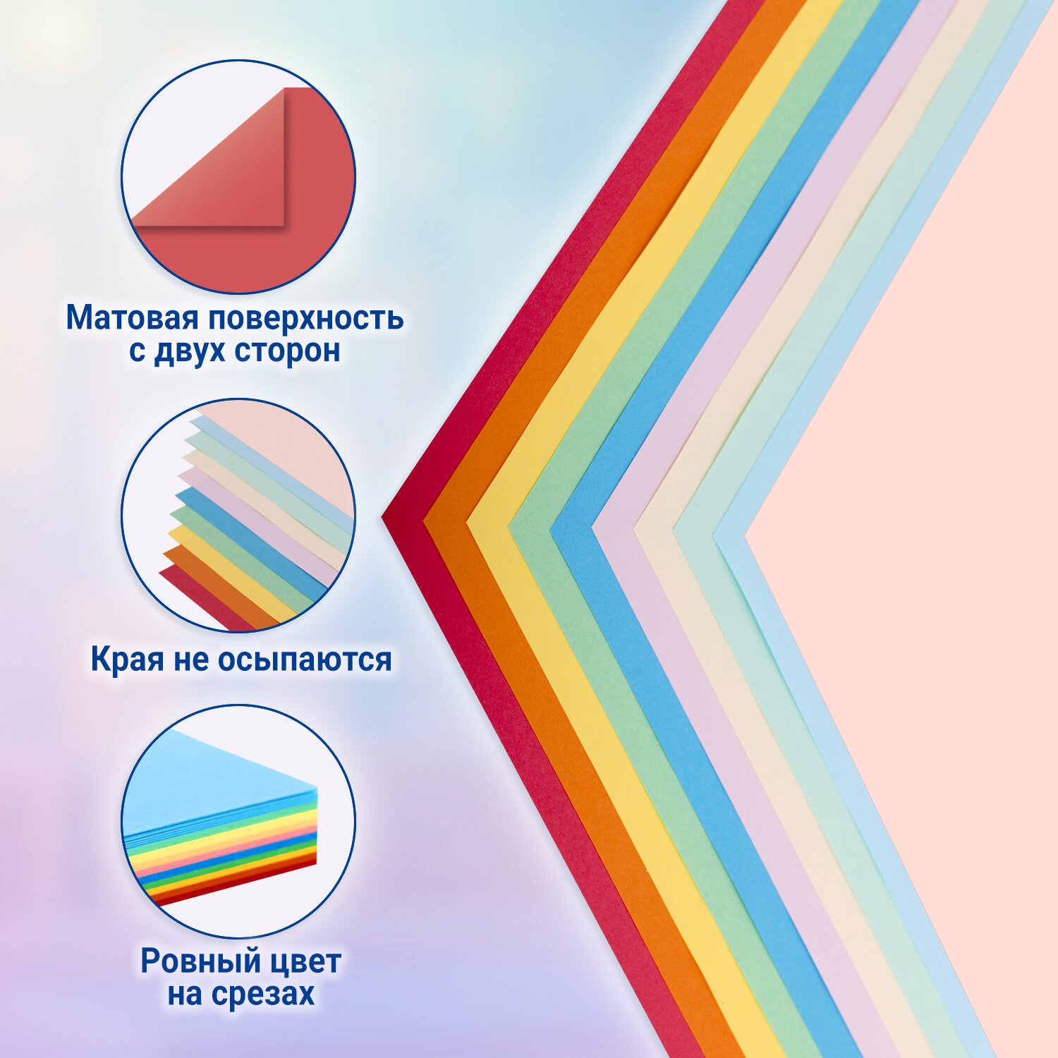 Бумага для оригами и аппликаций 14х14 см, 200 листов, 20 цветов, ОСТРОВ СОКРОВИЩ, 113717