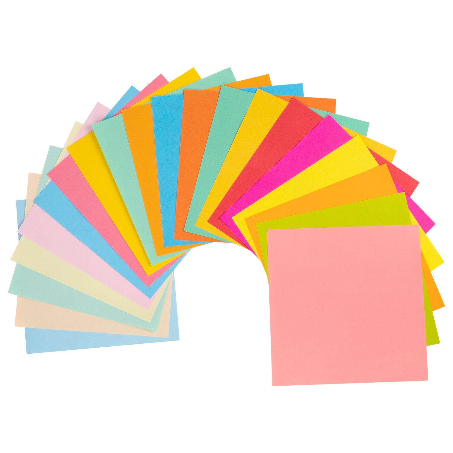 В набор входит 200 листов цветной бумаги для оригами размером 140х140 мм по 10 листов каждого цвета. Цветовая палитра - 20 цветов в тонах пастель, медиум, интенсив, неон.