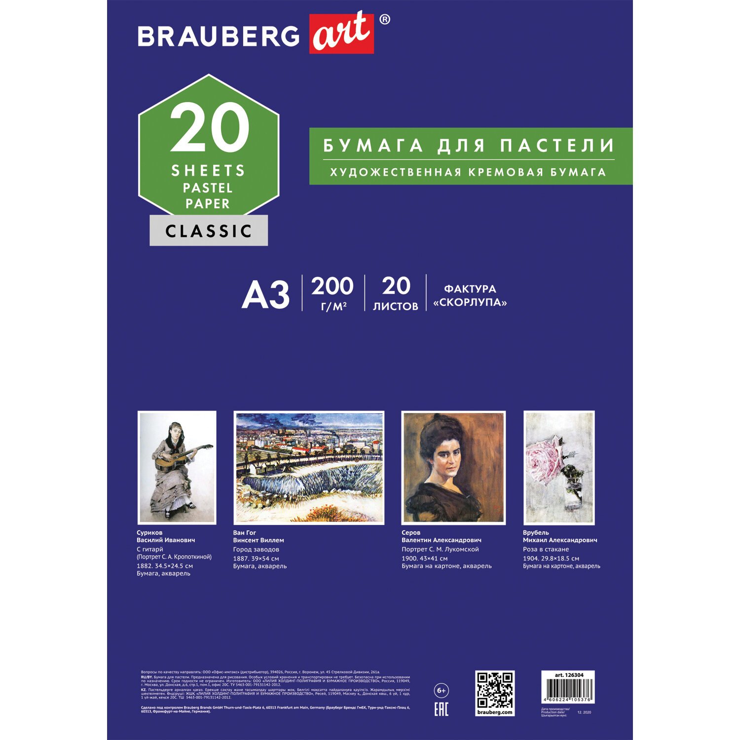 Бумага для пастели БОЛЬШАЯ А3, 20 л., 200г/м2, слоновая кость ГОЗНАК 200 г/м2, тиснение Холст, BRAUBERG ART, 126305