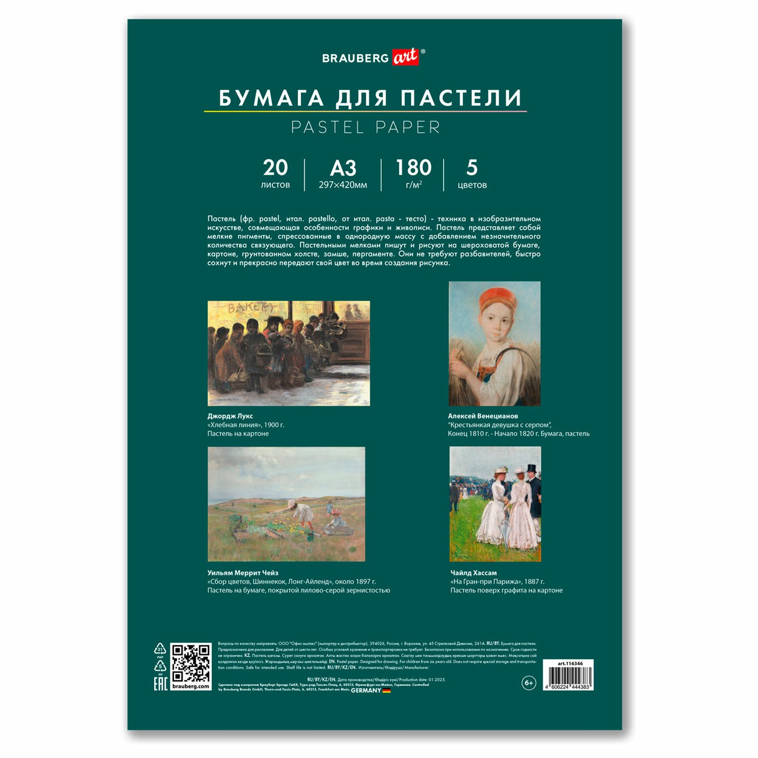Бумага для пастели BRAUBERG предназначена для различных техник рисования. Позволяет создавать мягкие и детализированные текстуры на картинах, а при более плотной зарисовке пастель выглядит ярко и сочно.