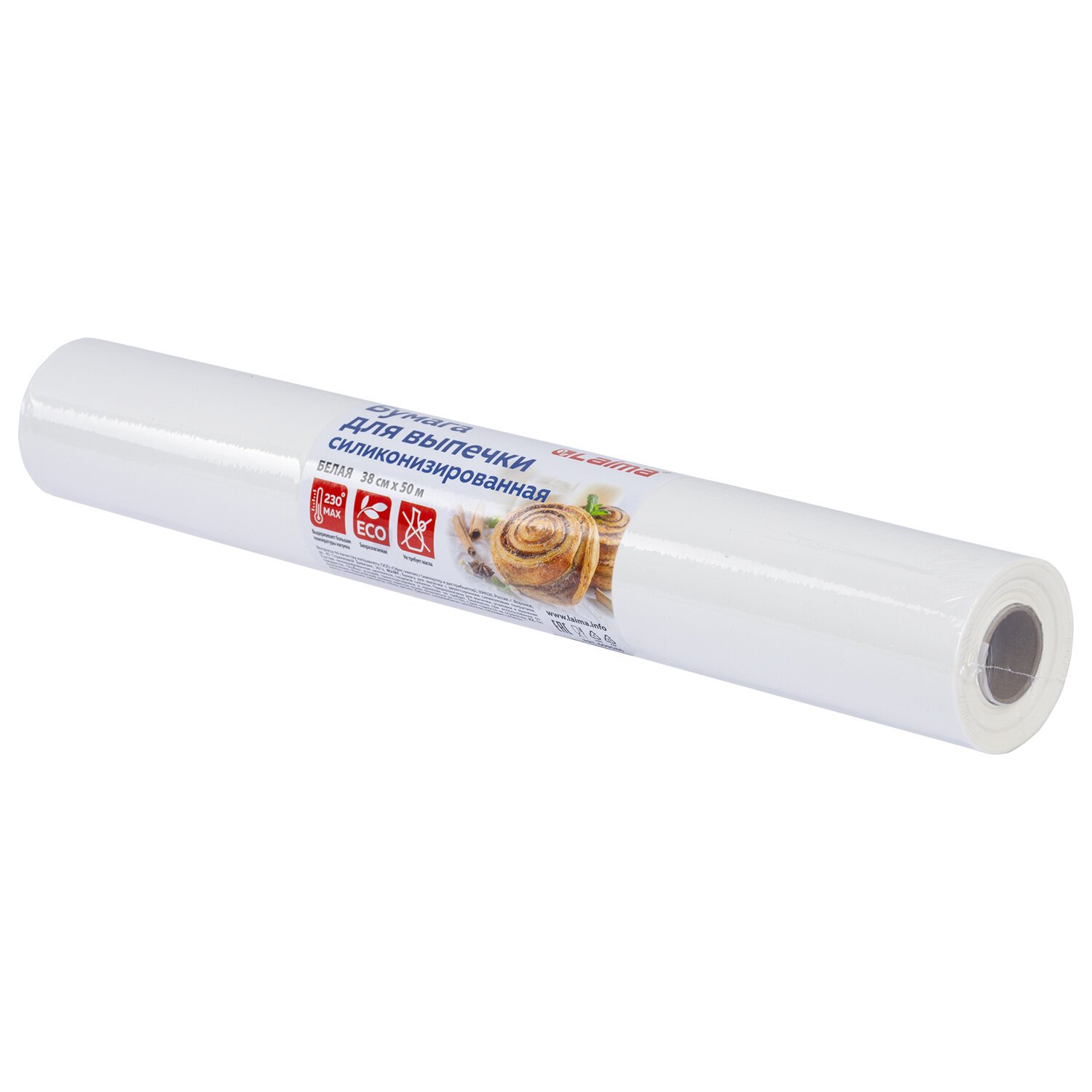 Бумага для выпечки силиконизированная, пергамент 38 см х 50 м, белый, LAIMA, CH, 609586
