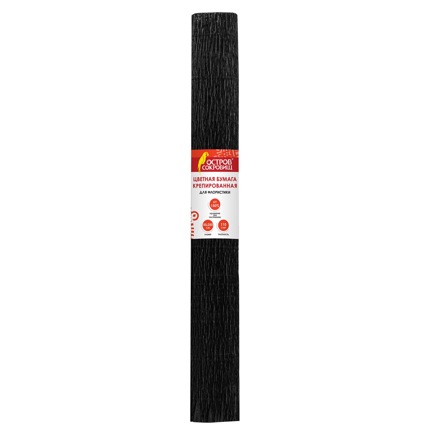 Бумага гофрированная/креповая, 110 г/м2, 50х250 см, черная, в рулоне, ОСТРОВ СОКРОВИЩ, 112543