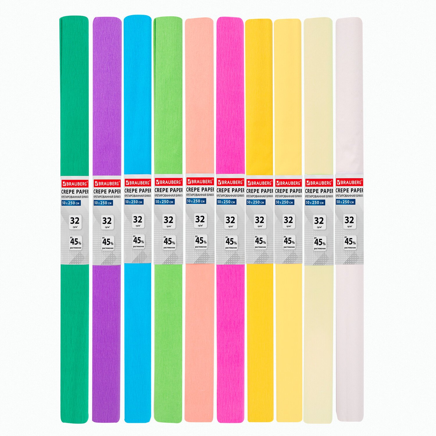 Бумага гофрированная/креповая, 32 г/м2, 50х250 см, 10 рулонов, пастель, BRAUBERG, 112557