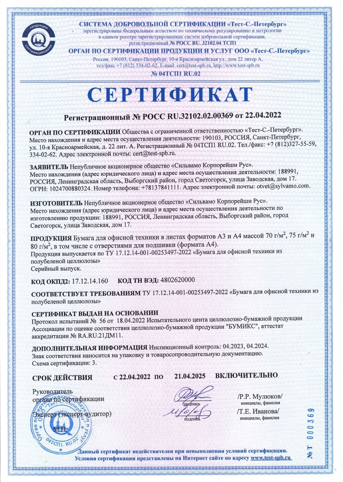 Выпускается в соответствии с ТУ 17.12.14-001-00253497-2022.