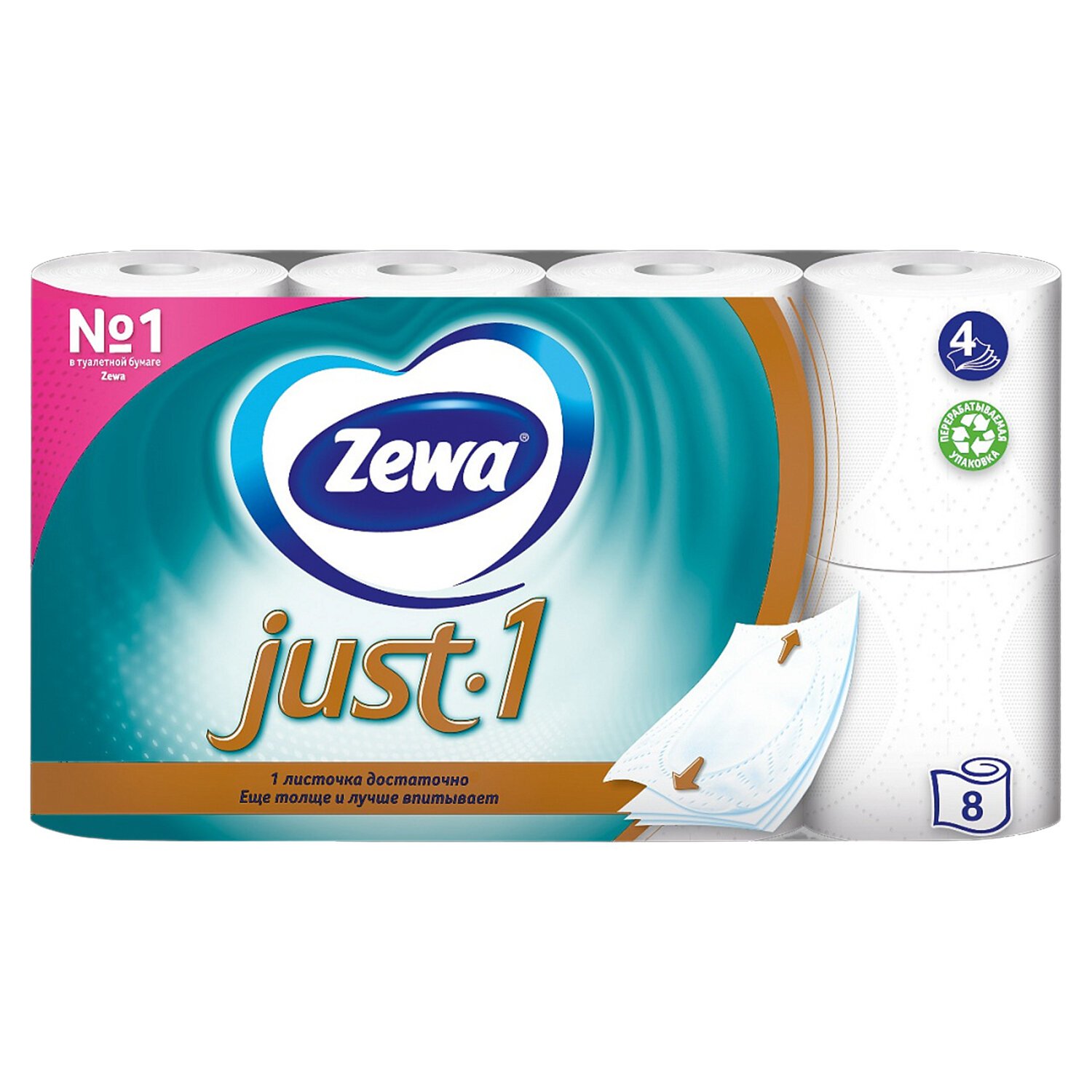 Бумага туалетная 4-х слойная 8 рулонов (8х12 м), белая, ZEWA Just 1, 144120