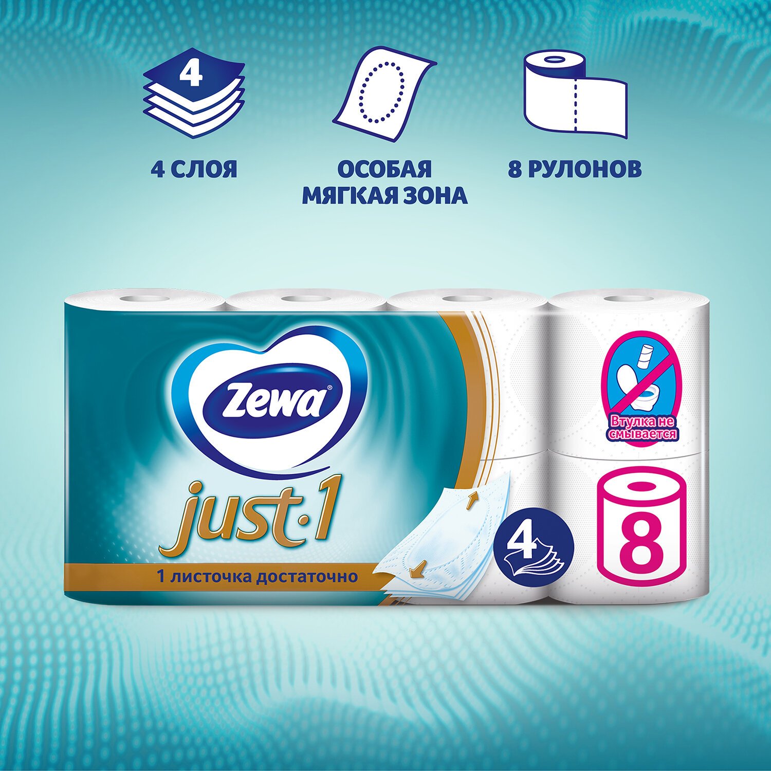 ZEWA Just 1 дарит ощущение безупречной чистоты: каждый листочек на 20% больше и 50% толще, поэтому впитывает в 2 раза лучше, чем обычная туалетная бумага.