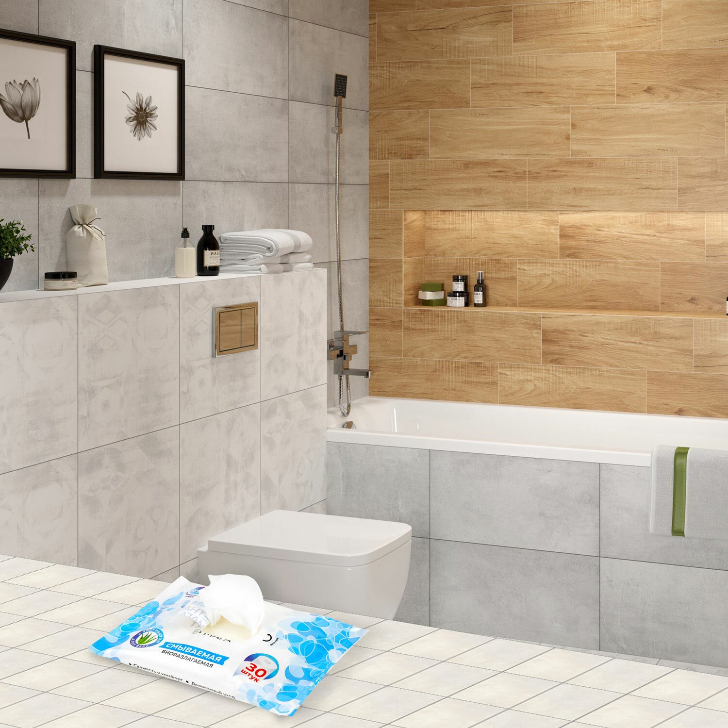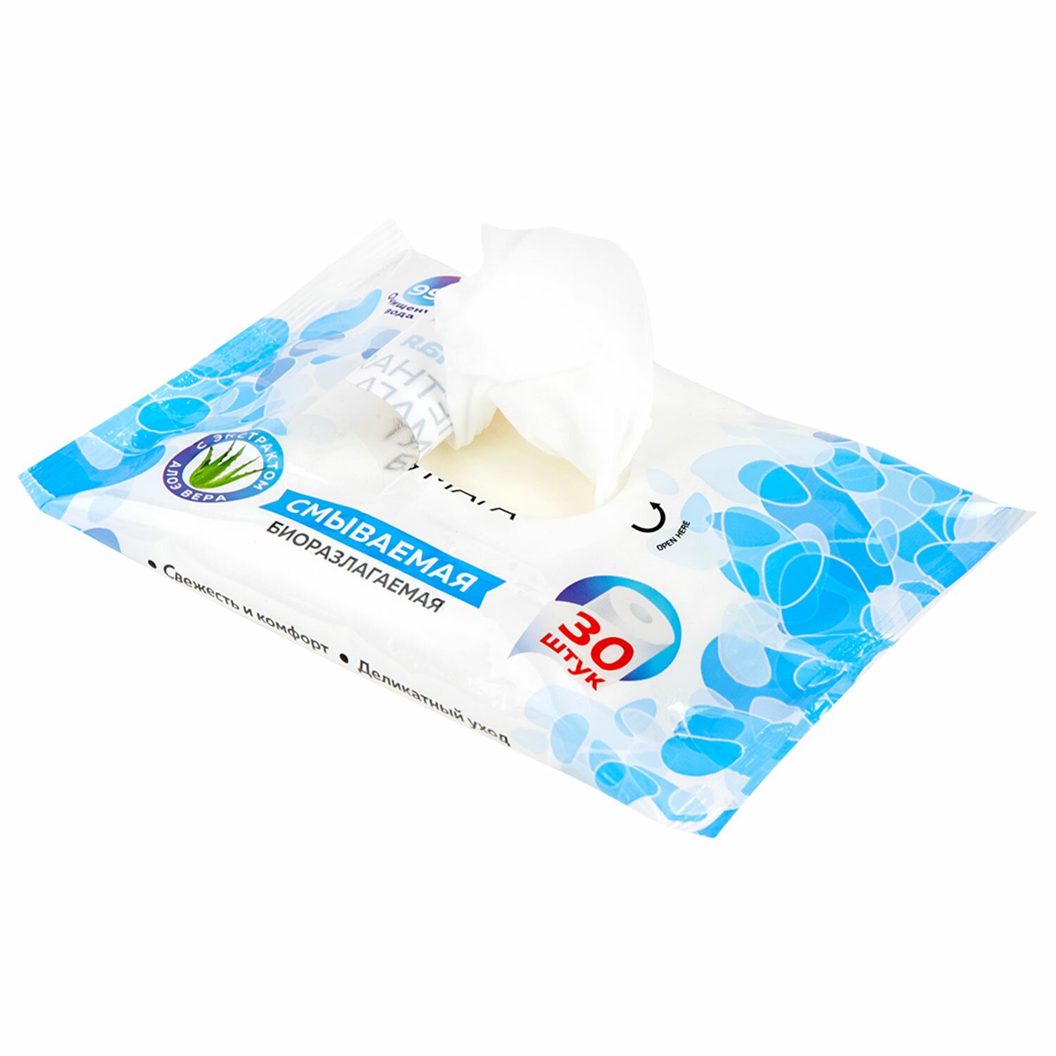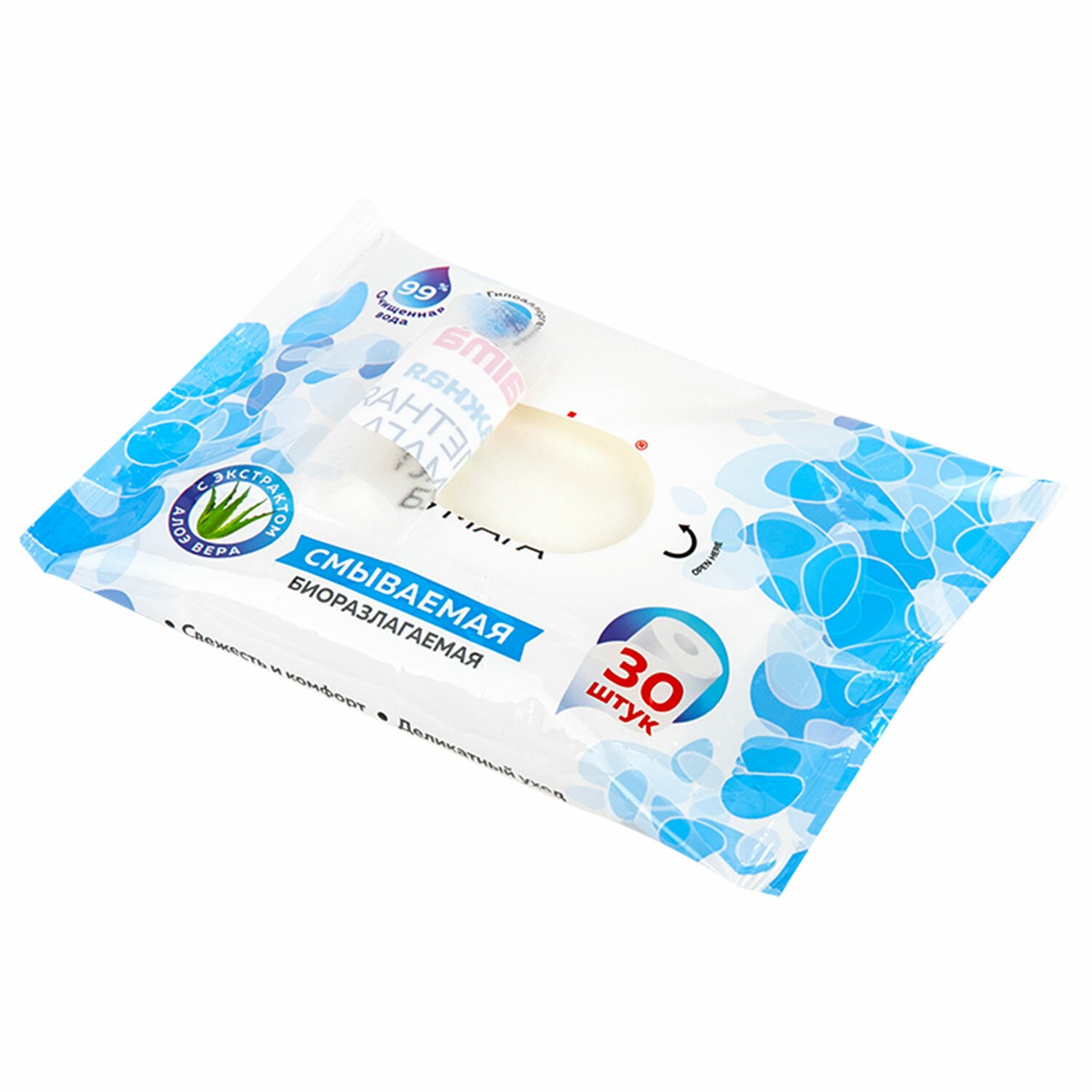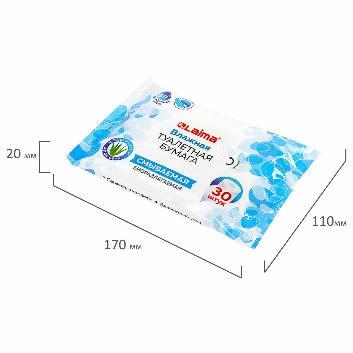 Бумага туалетная влажная 30 шт., БИОРАЗЛАГАЕМАЯ, смываемая, с экстрактом алоэ вера, LAIMA, 128082