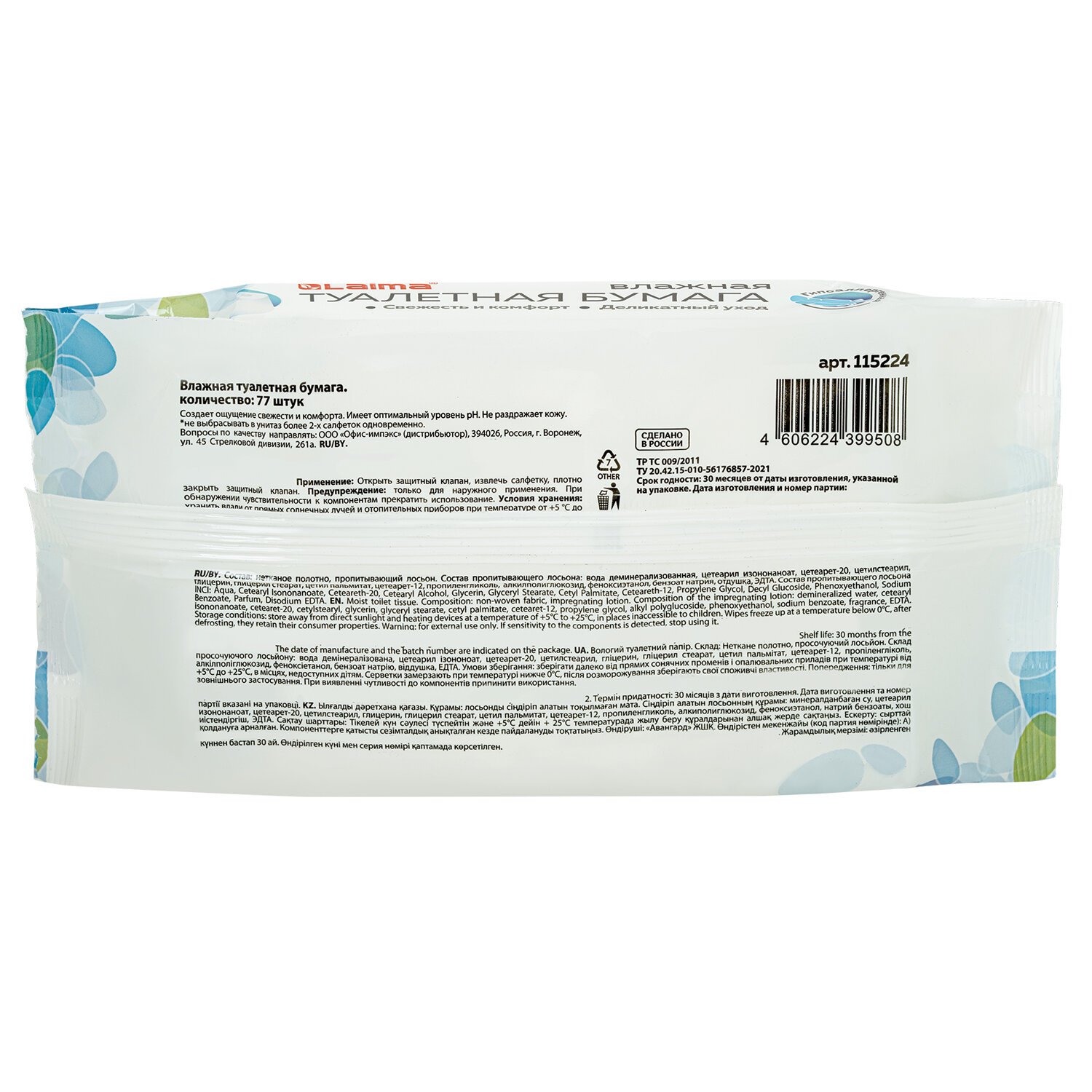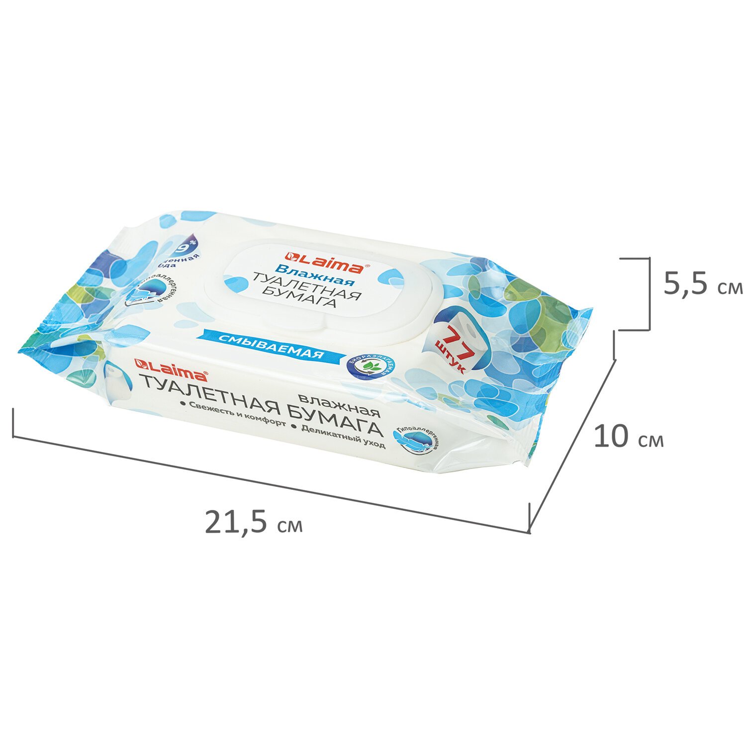 Бумага туалетная влажная 77 шт., БИОРАЗЛАГАЕМАЯ, смываемая, с пластиковым клапаном, LAIMA, 115224