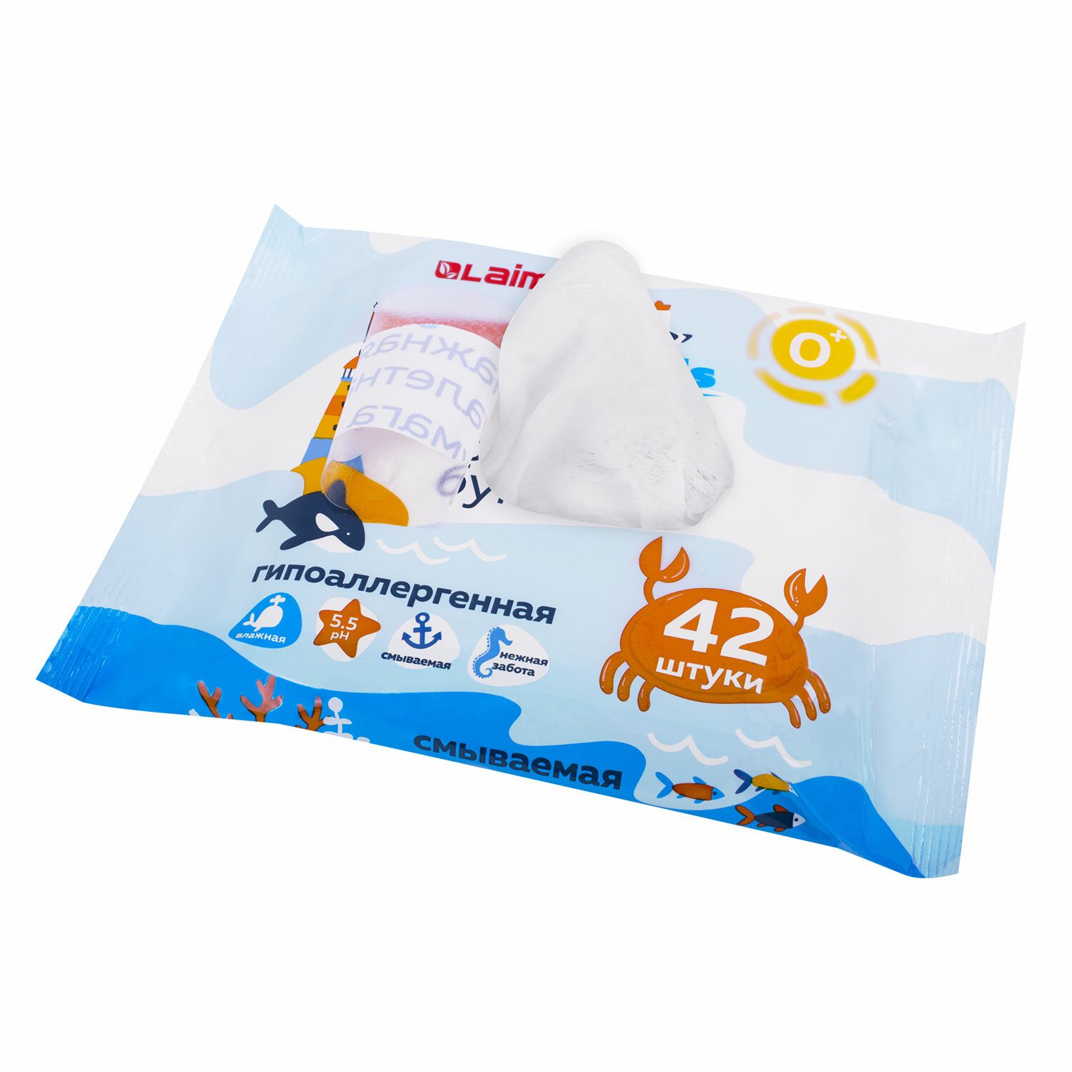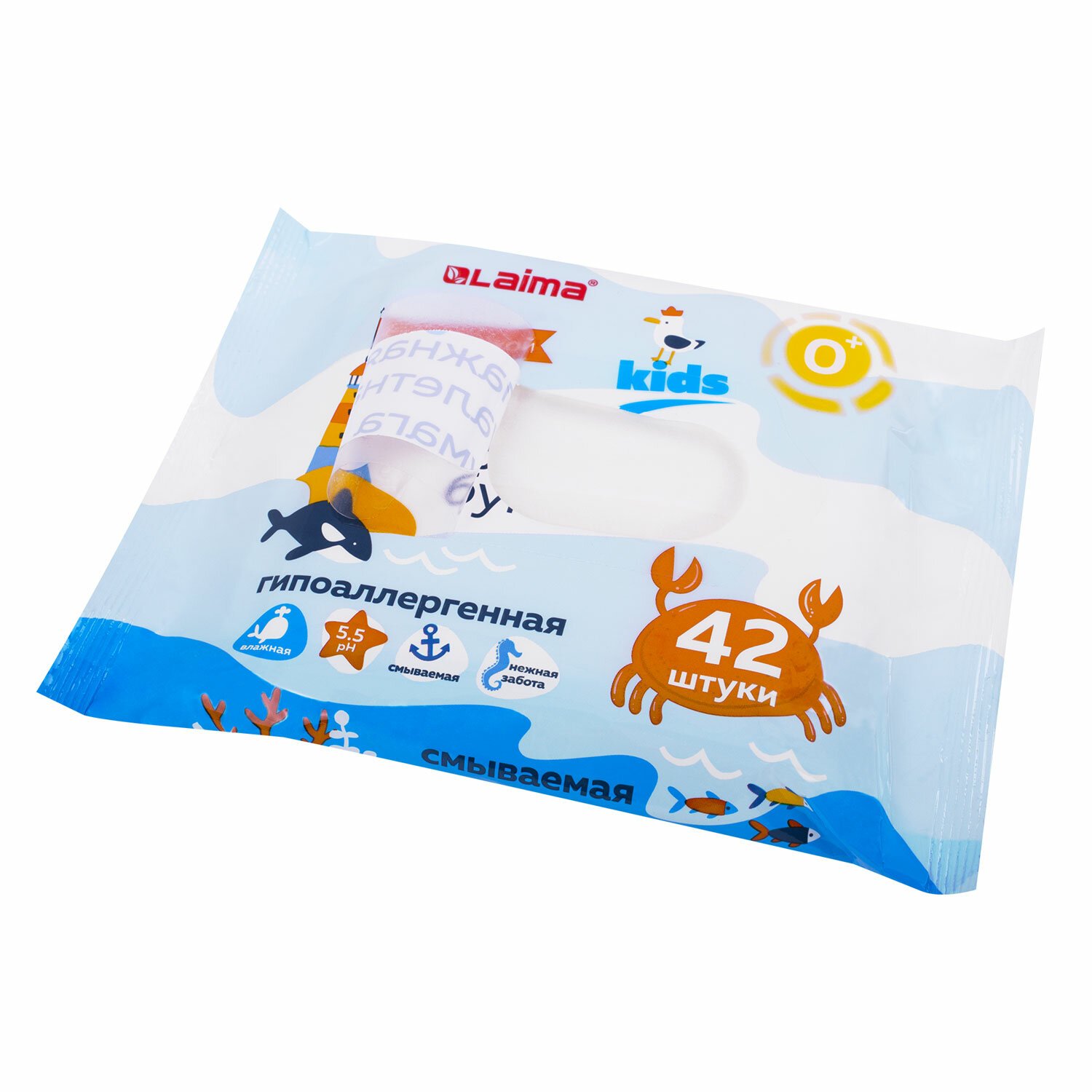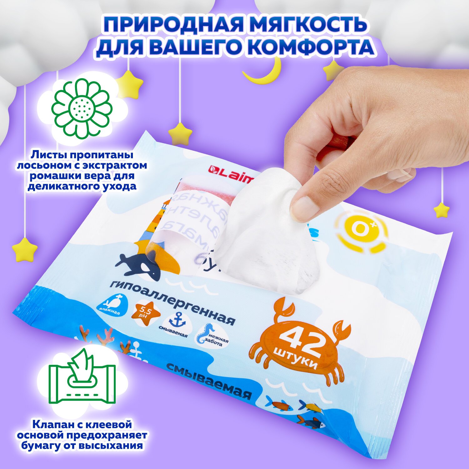 Бумага туалетная влажная детская 42 шт., БИОРАЗЛАГАЕМАЯ, смываемая, LAIMA Kids, 115223