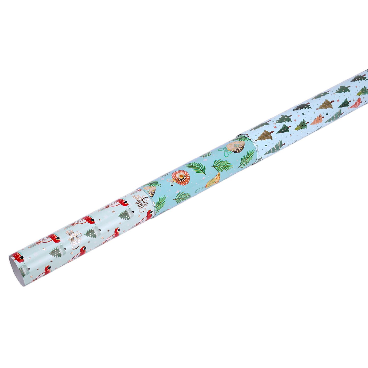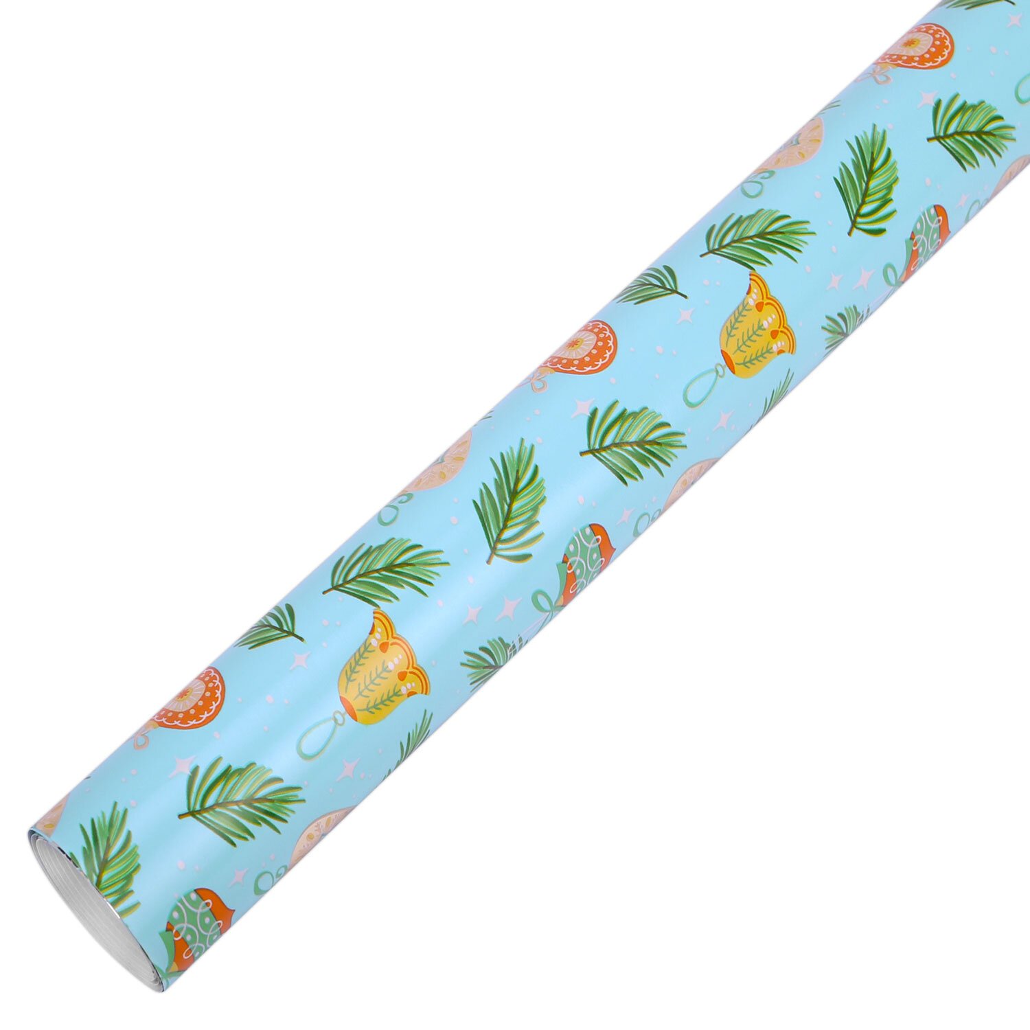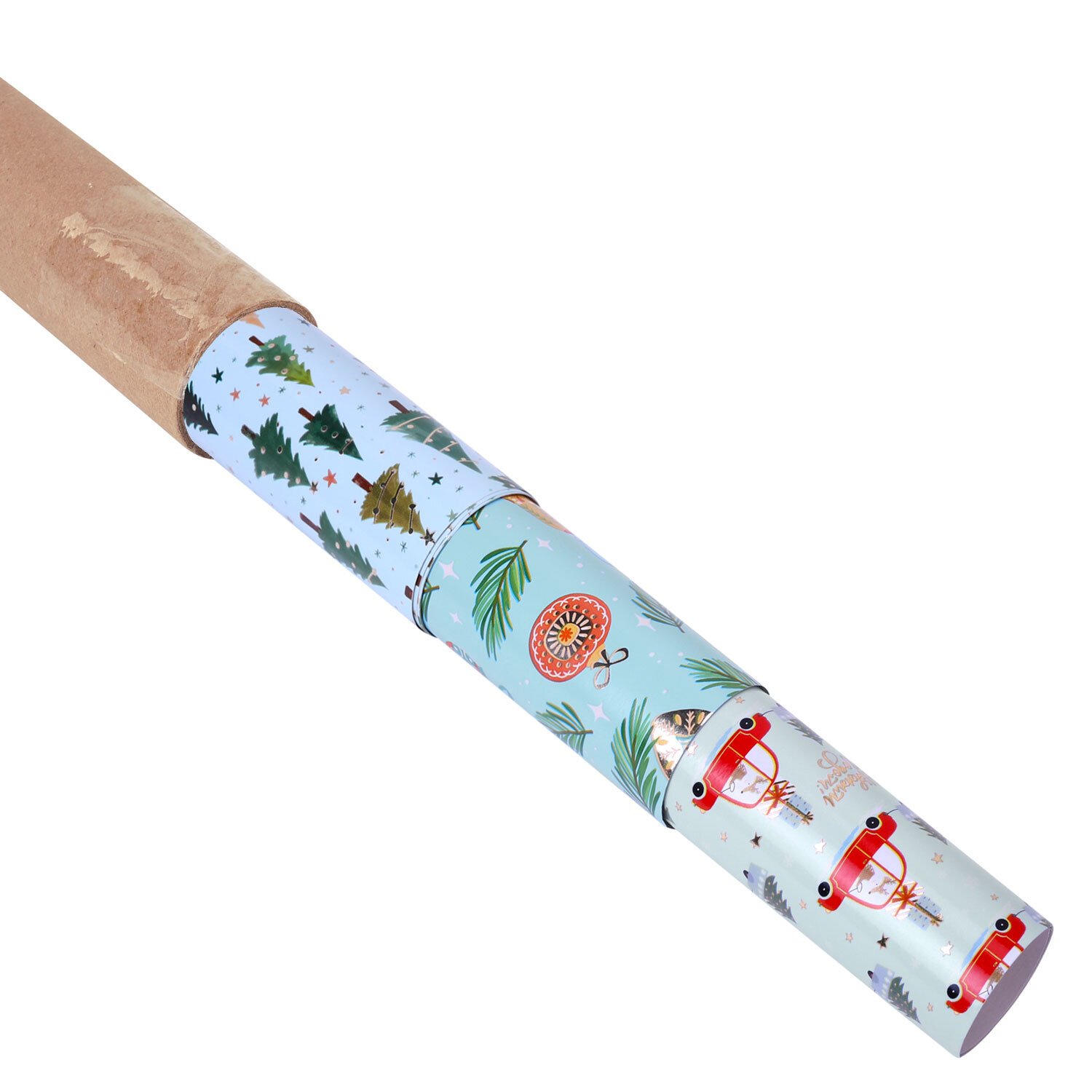 Набор из 3 рулонов, каждый рулон – размером 70х100 см. Все рулоны выполнены в красивом новогоднем дизайне с ярким эффектом. Представляют собой легкомелованную бумагу с нанесенной на нее металлизированной пленкой, за счет которой и достигается красивый переливающийся эффект. Итоговая плотность бумаги – 80 г/м2.