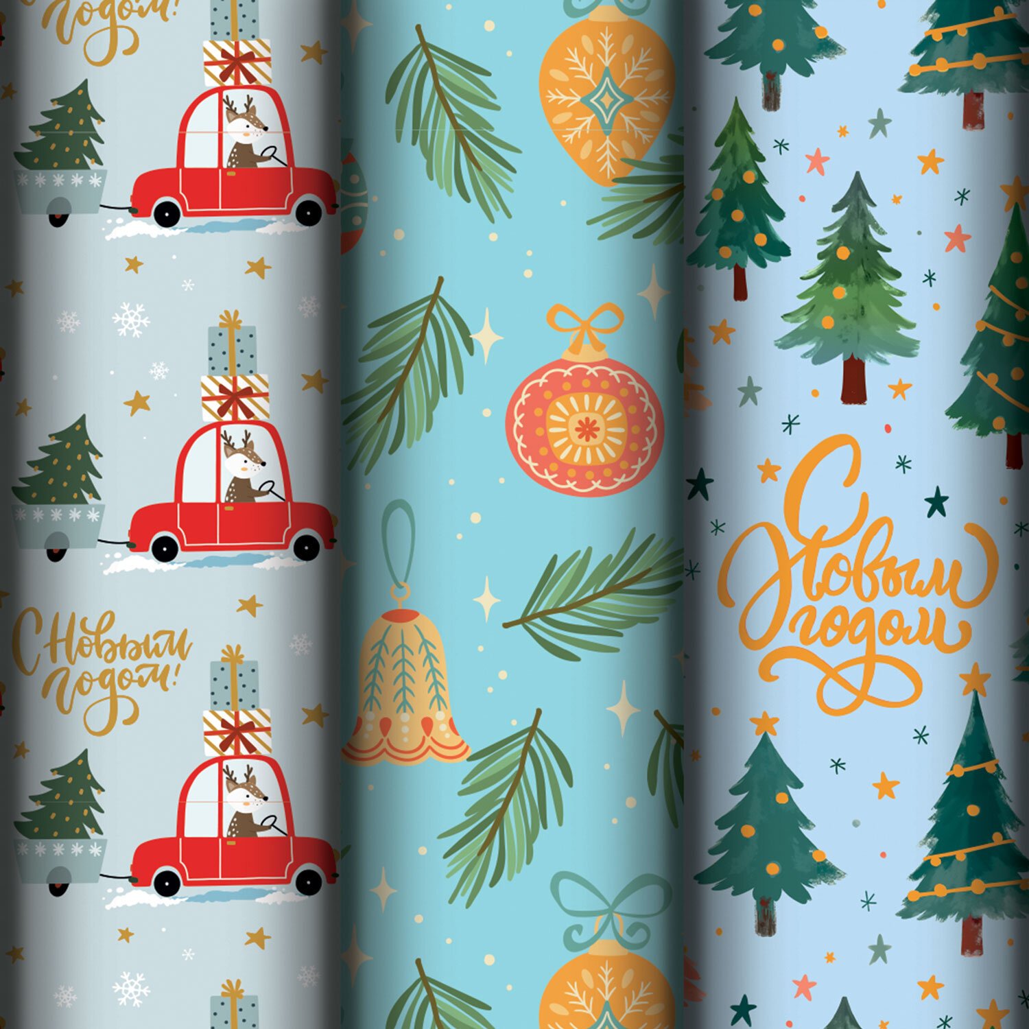 Бумага упаковочная новогодняя НАБОР 3 шт. "NY Pattern", С ЭФФЕКТАМИ, 70х100 см, ЗОЛОТАЯ СКАЗКА, 592187