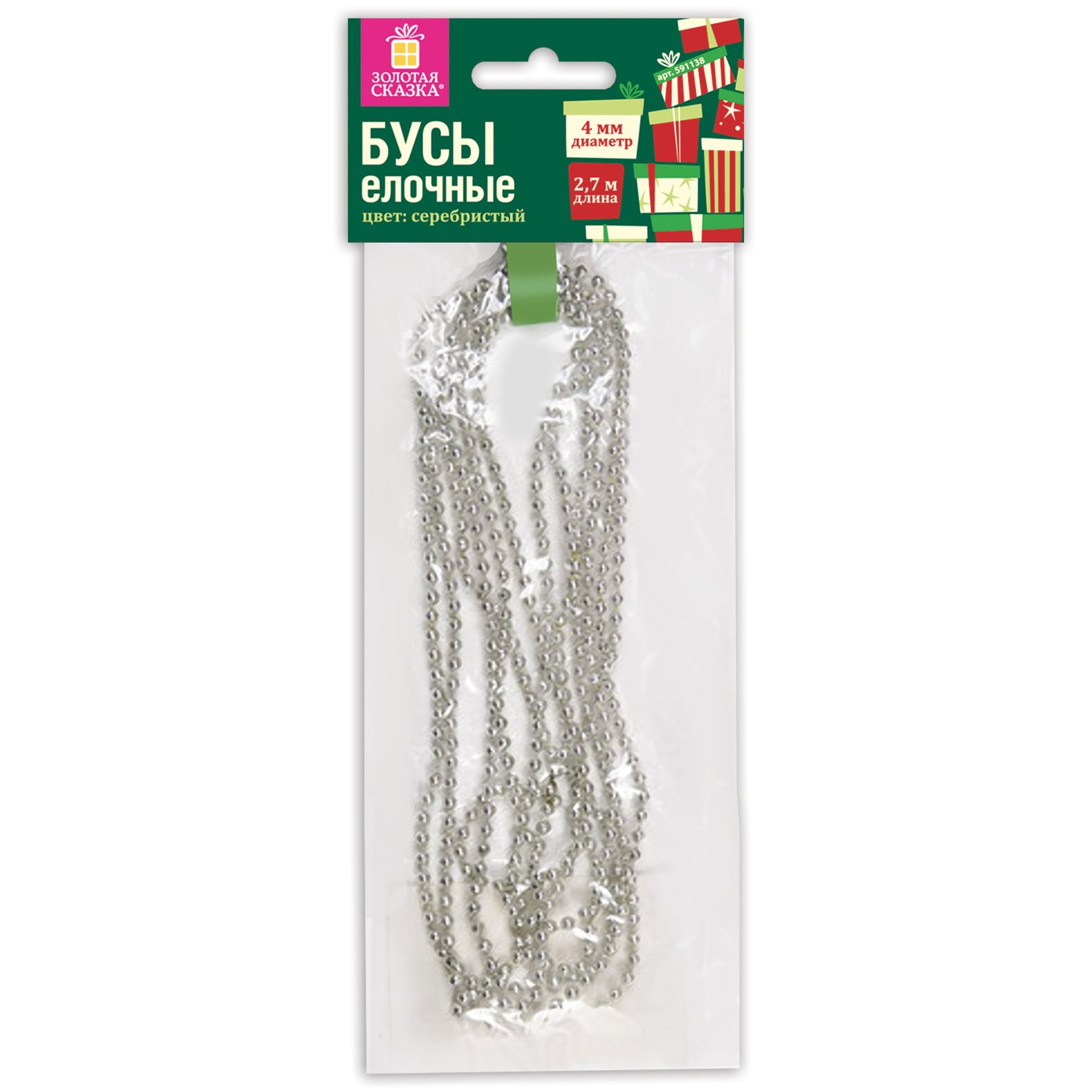 Бусы елочные ЗОЛОТАЯ СКАЗКА, диаметр 4 мм, длина 2,7 м, серебристые, 591138
