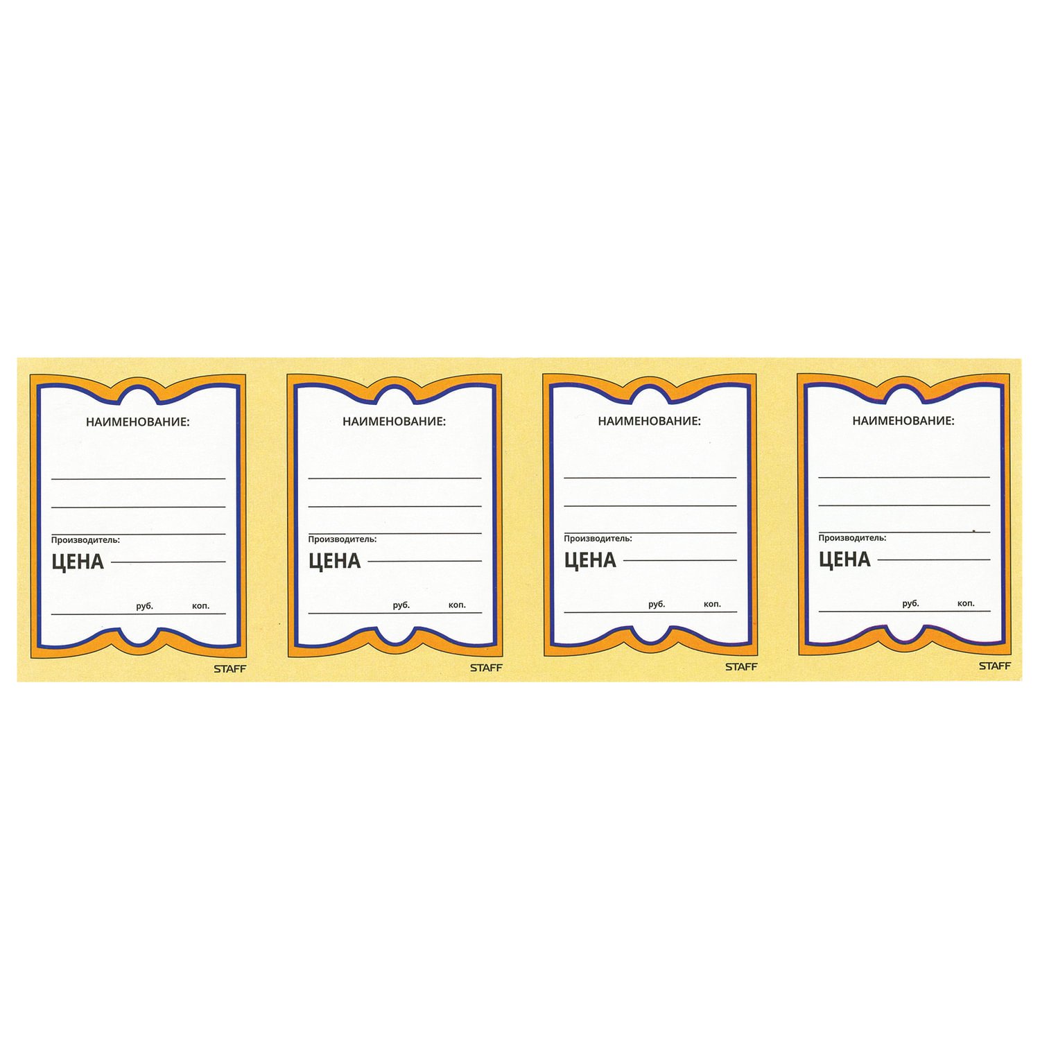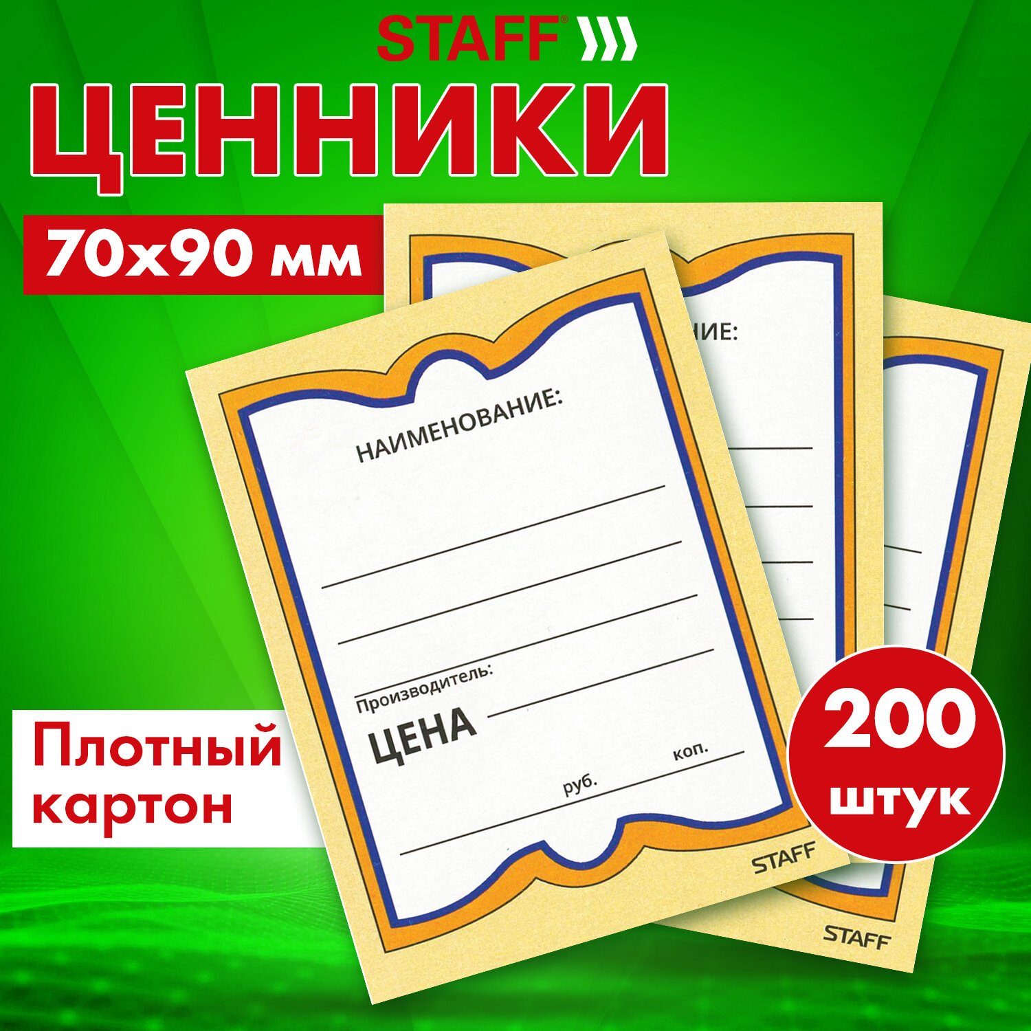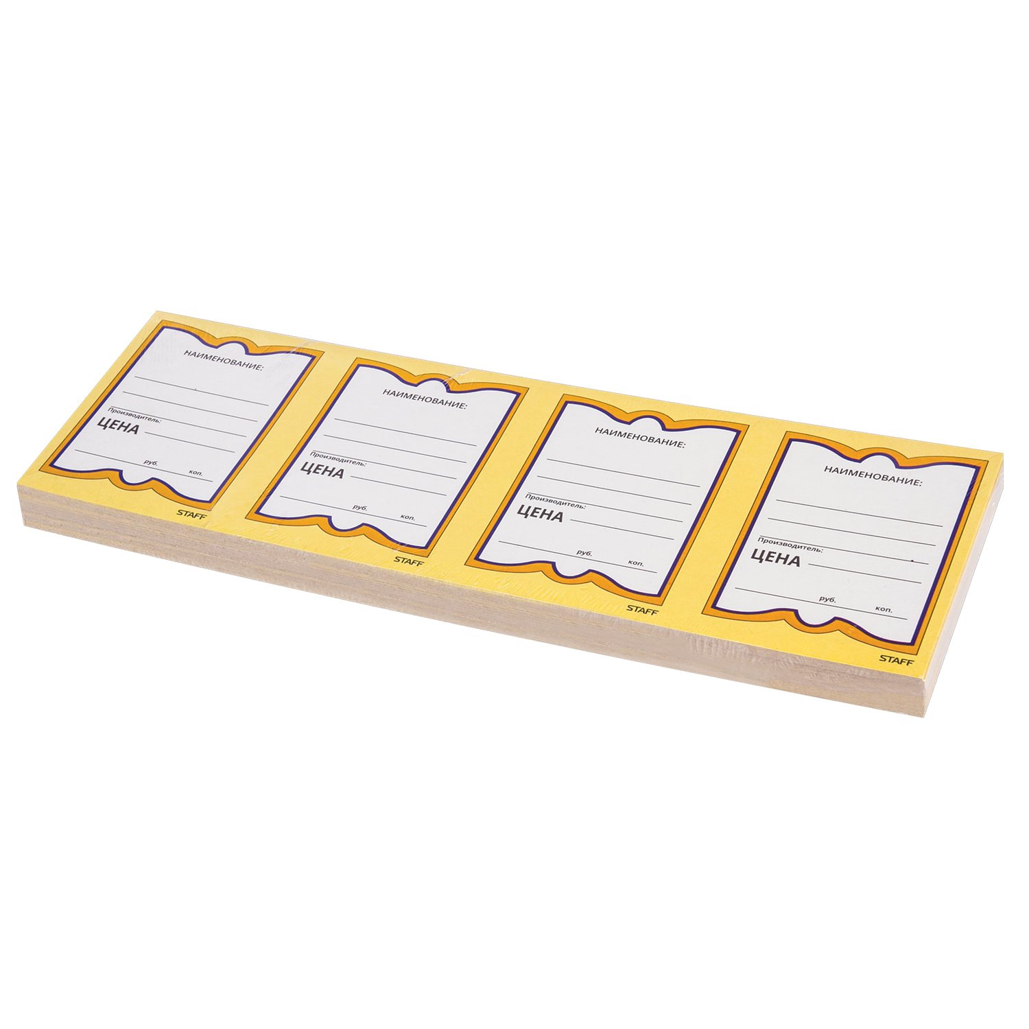 Картонные ценники STAFF наиболее оптимальны для магазинов, торгующих продуктами питания, поскольку картон сохраняет форму при изменении влажности и температуры. Удобные поля позволяют нанести информацию о фирме, наименовании и цене.