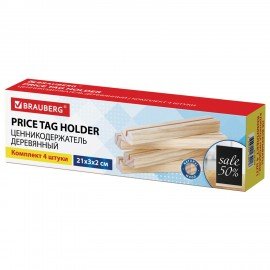 Ценникодержатель деревянный (ценники, реклама, фото) 21х3х2 см, КОМПЛЕКТ 4 шт., BRAUBERG, 291315