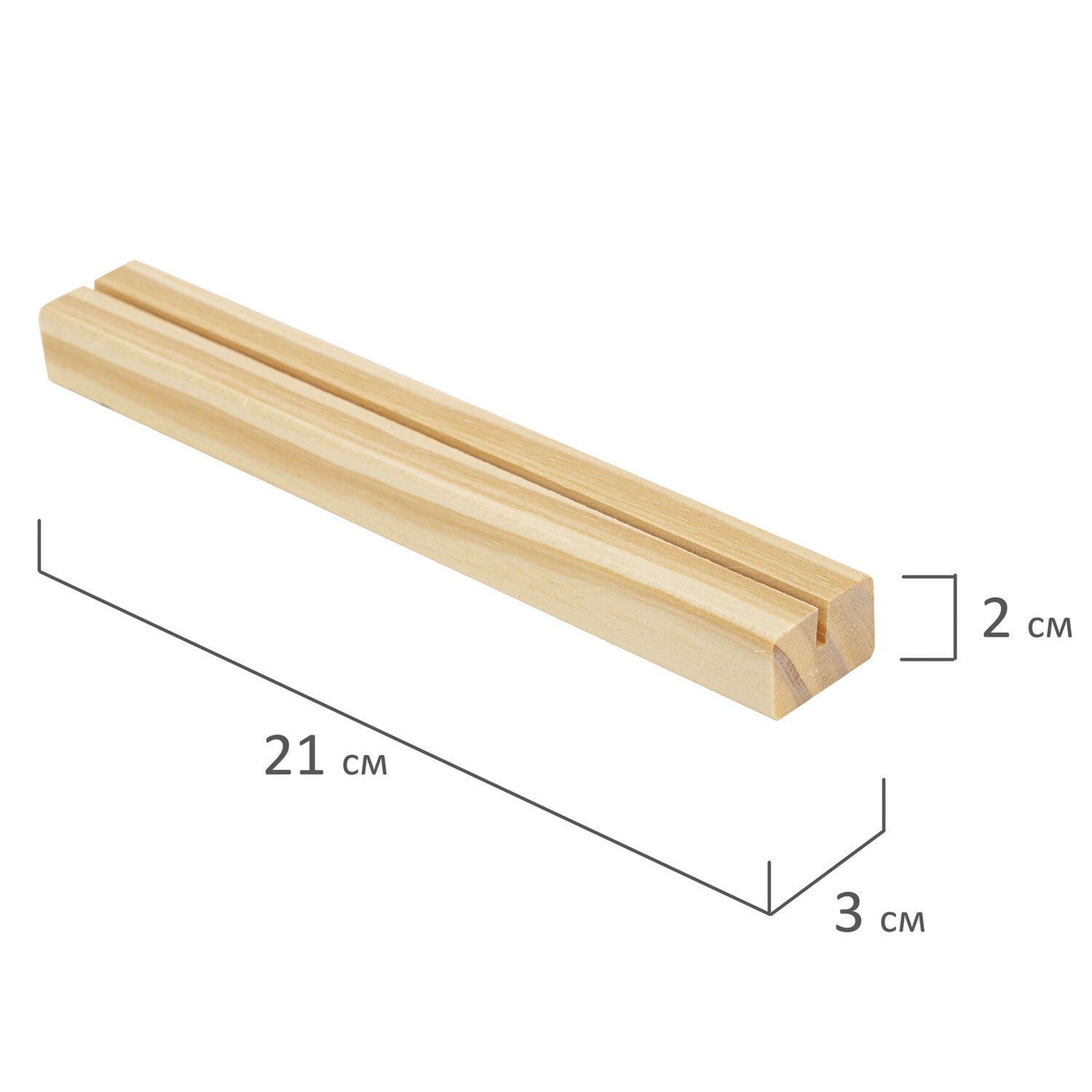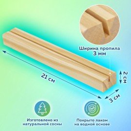 Держатели для ценников изготовлены из натуральной сосны и покрыты лаком на водной основе, обеспечивающим долговечность товара. Размер держателя составляет 210x30x20 мм, ширина пропила – 3 мм.