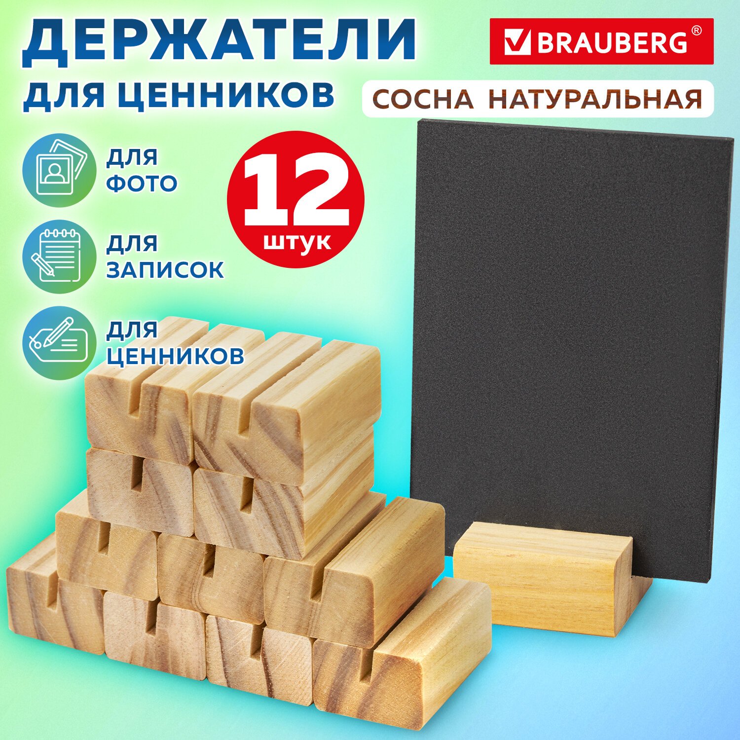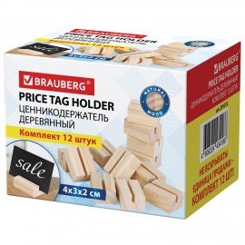 Ценникодержатель деревянный (ценники, реклама, фото) 4х3х2 см, КОМПЛЕКТ 12 шт., BRAUBERG, 291312