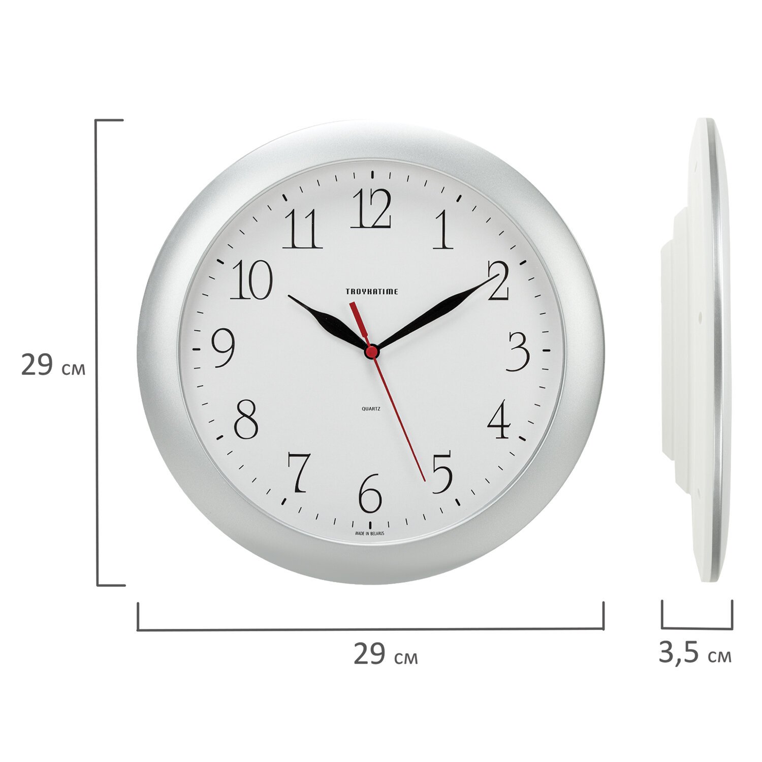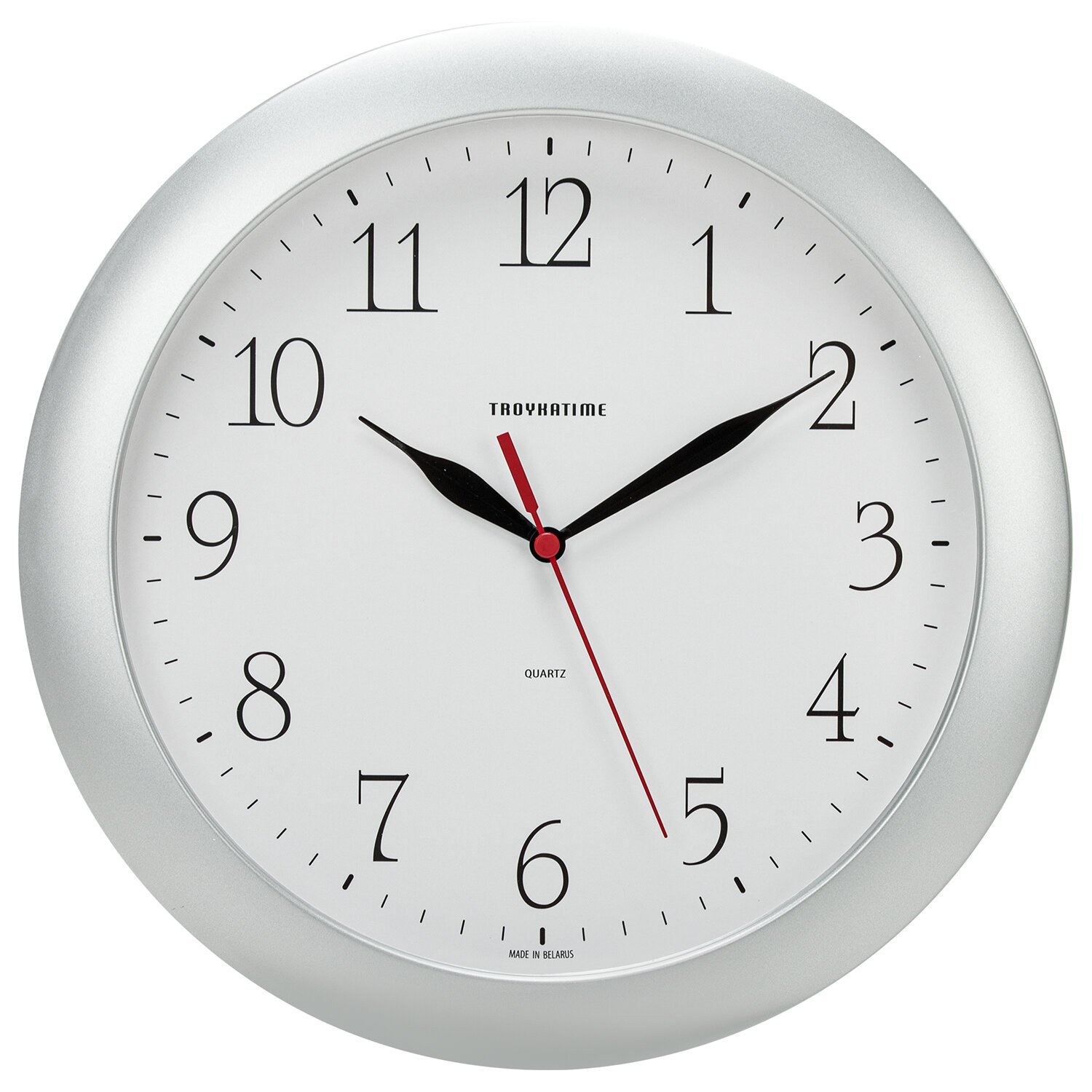 Часы настенные TROYKATIME (TROYKA) 11170113, круг, белые, серебристая рамка, 29х29х3,5 см