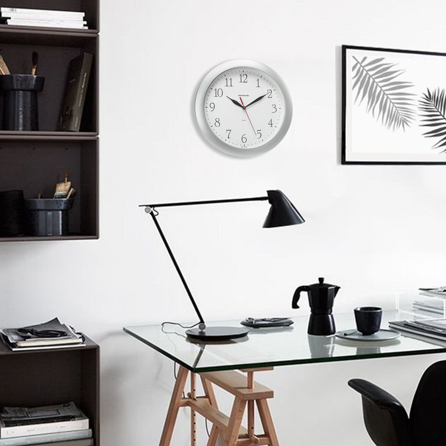Часы настенные TROYKATIME (TROYKA) 77770732, круг, белые, черная рамка, 30,5х30,5х5 см