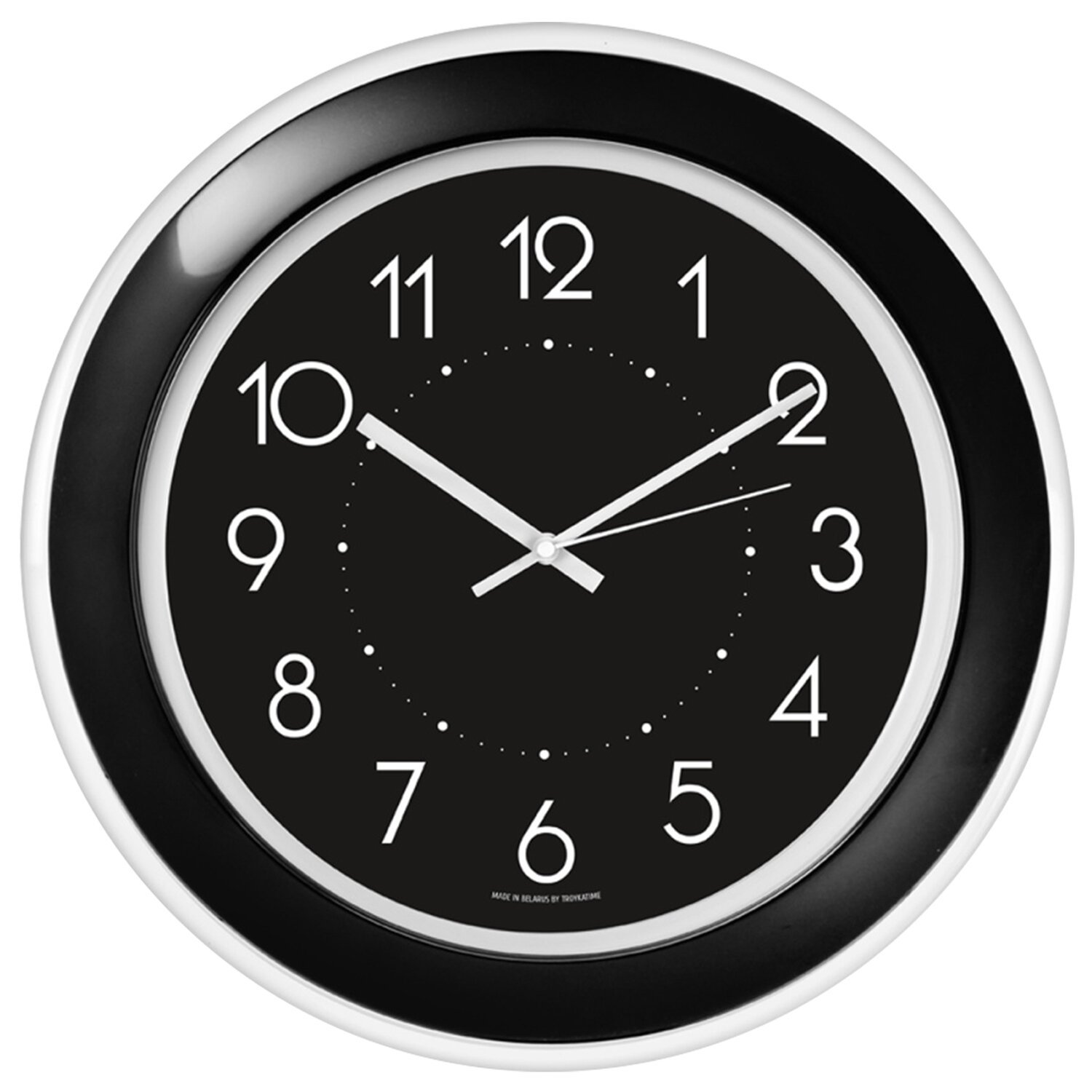 Часы настенные TROYKATIME (TROYKA) 11100112, круг, белые, черная рамка, 29х29х3,5 см