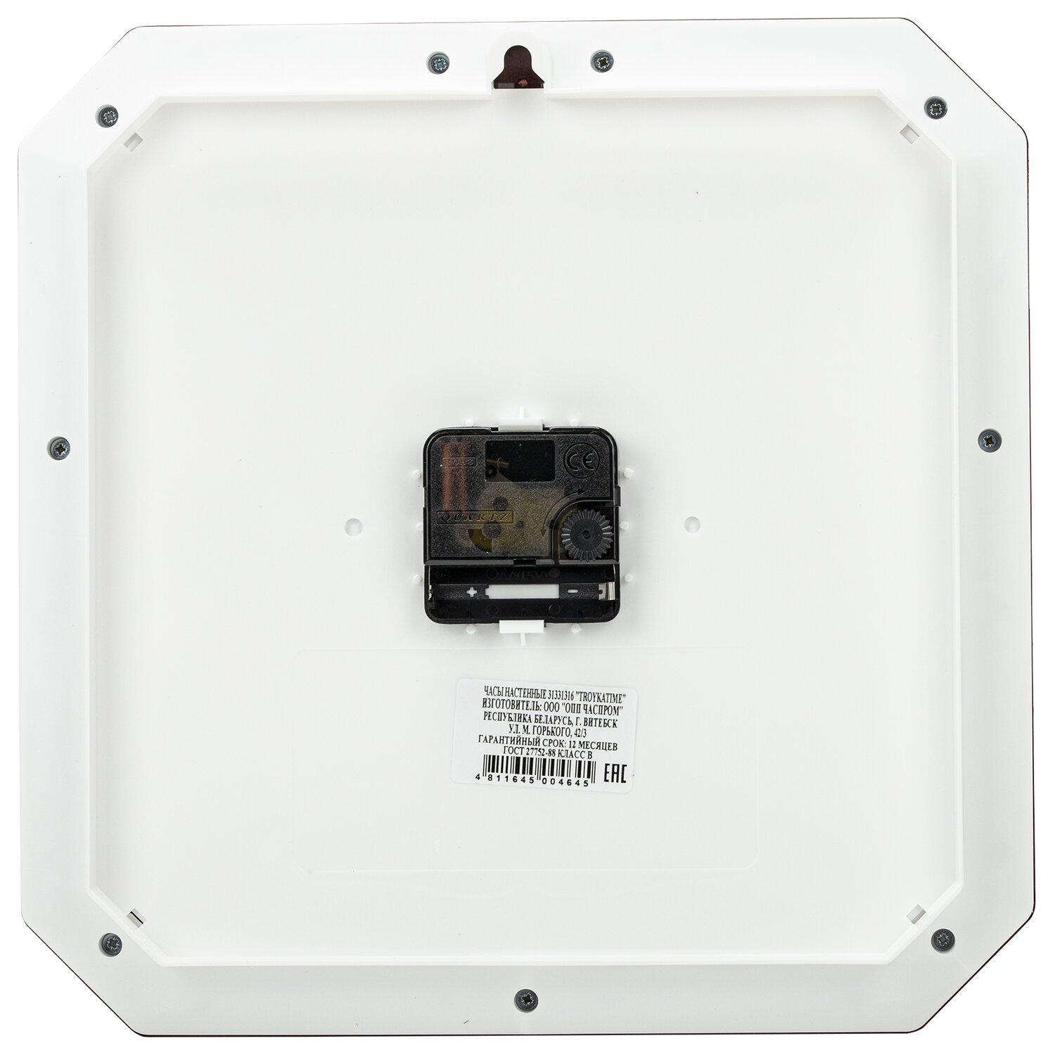 Часы настенные TROYKATIME (TROYKA) 31331316, восьмигранник, белые, коричневая рамка, 29х29х3,5 см