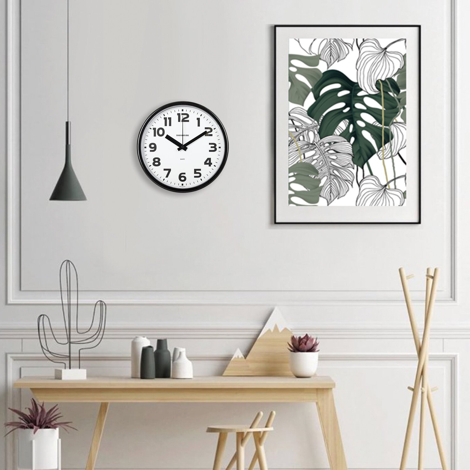 Часы настенные TROYKATIME (TROYKA) 77770732, круг, белые, черная рамка, 30,5х30,5х5 см