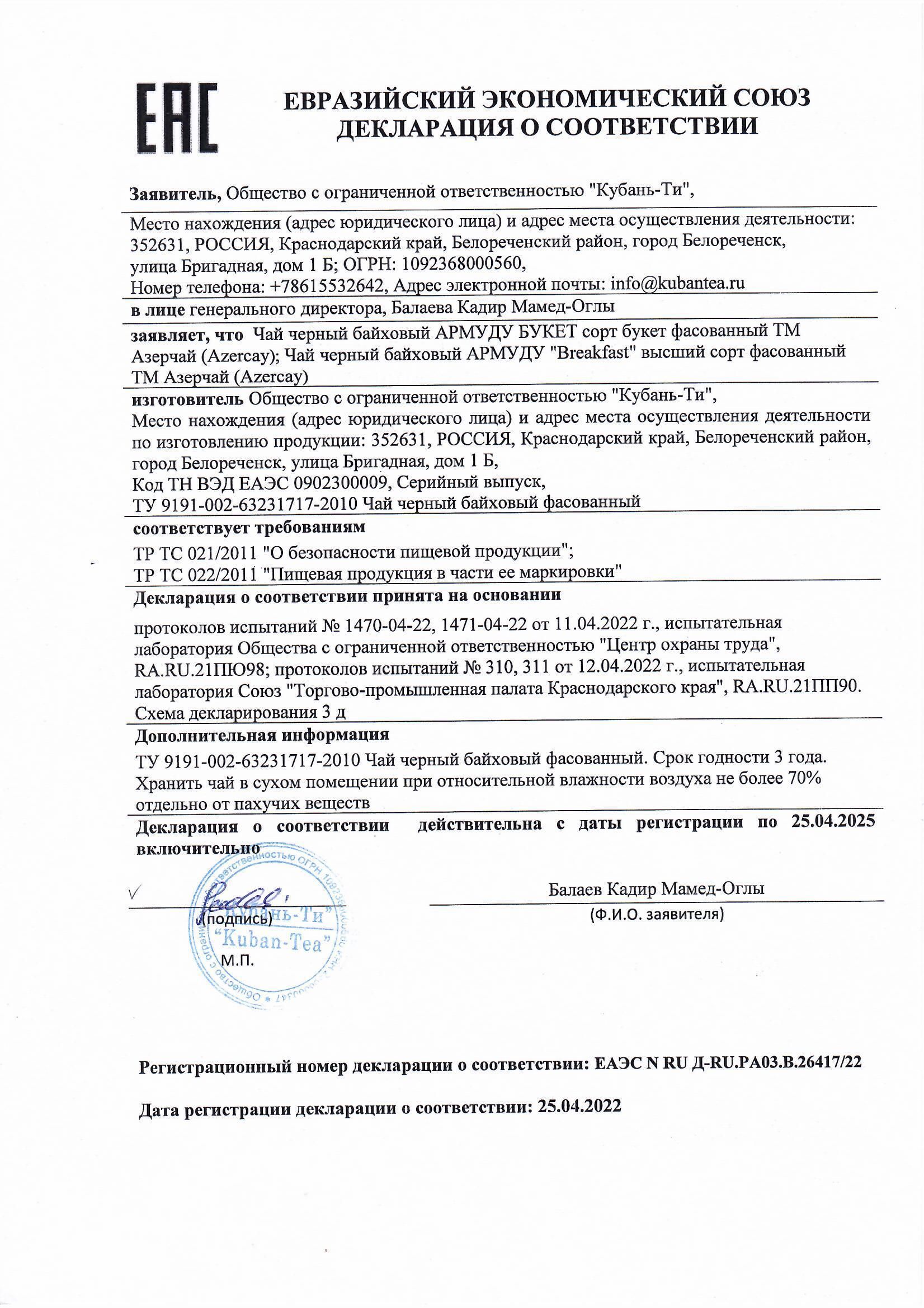 АЗЕРЧАЙ "Армуду Breakf – бодрящий напиток для идеального начала дня. Крепкий и насыщенный чай обладает нежным освежающим вкусом.
