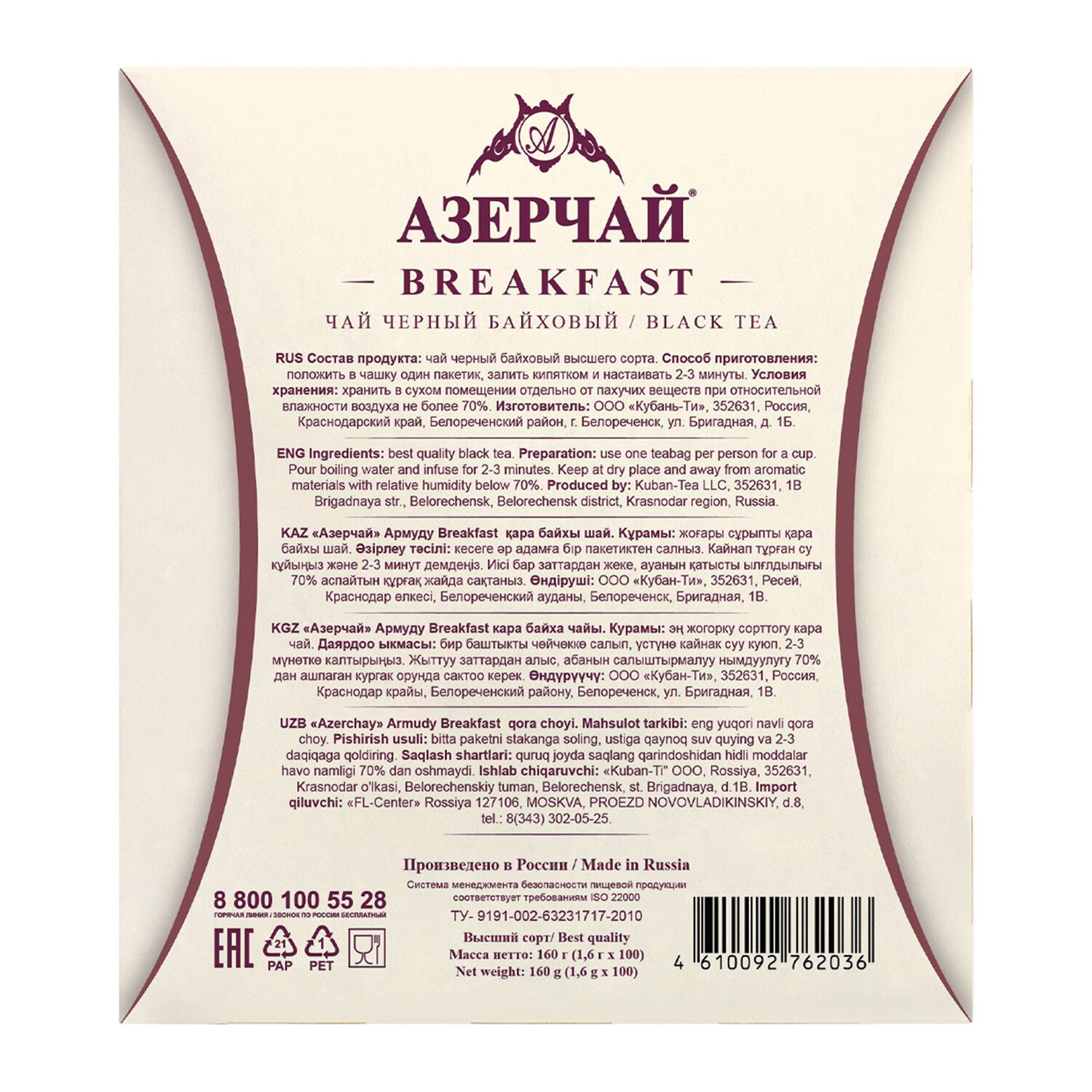 Чай АЗЕРЧАЙ "Армуду Breakfast" черный, 100 пакетиков по 1,6 г, 420534