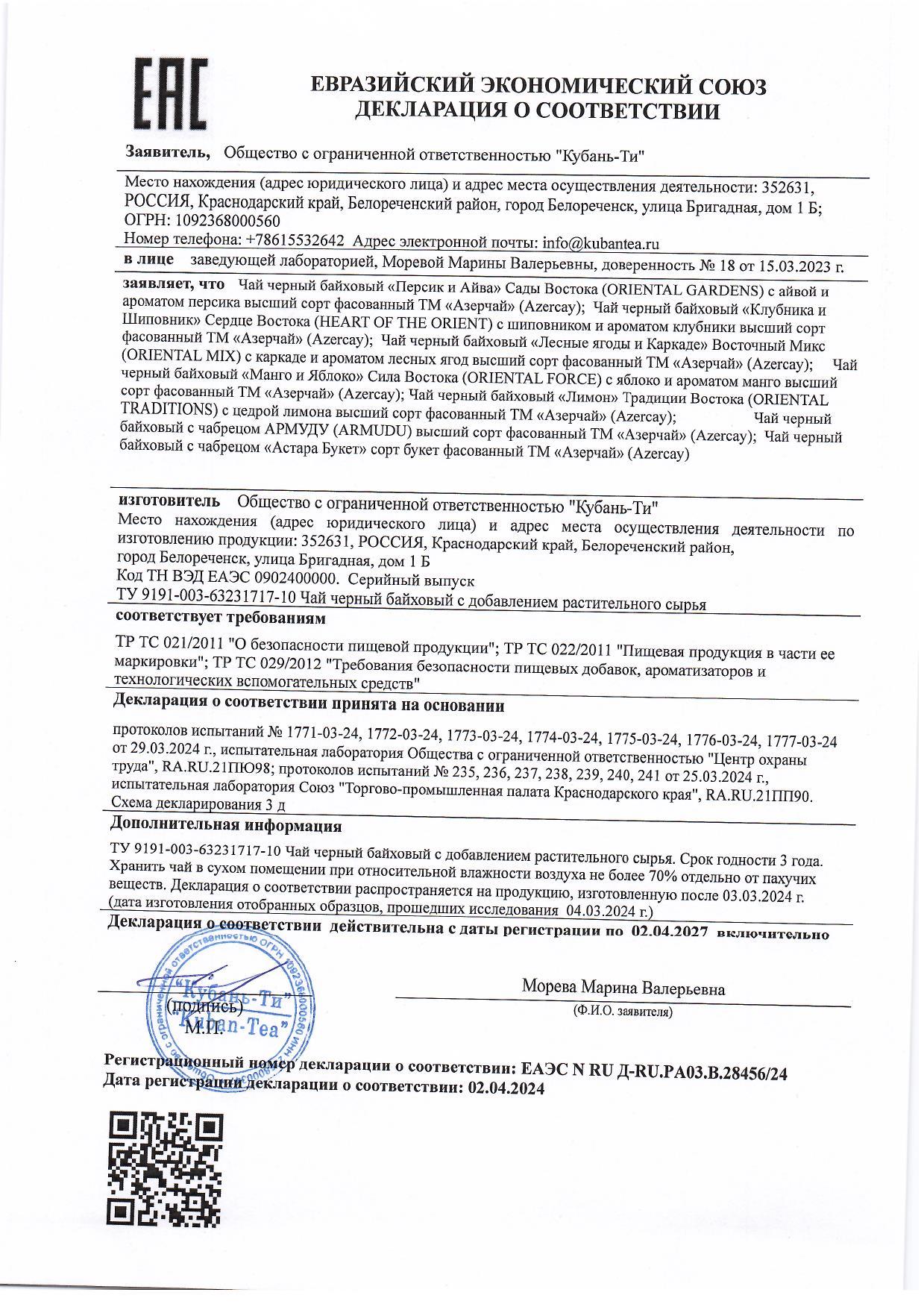 АЗЕРЧАЙ "Армуду" черный с чабрецом содержит большое количество витаминов, является прекрасным антисептиком. Изысканная терпкость черного чая дополнена пряным ароматом и неповторимым ярким вкусом чабреца.