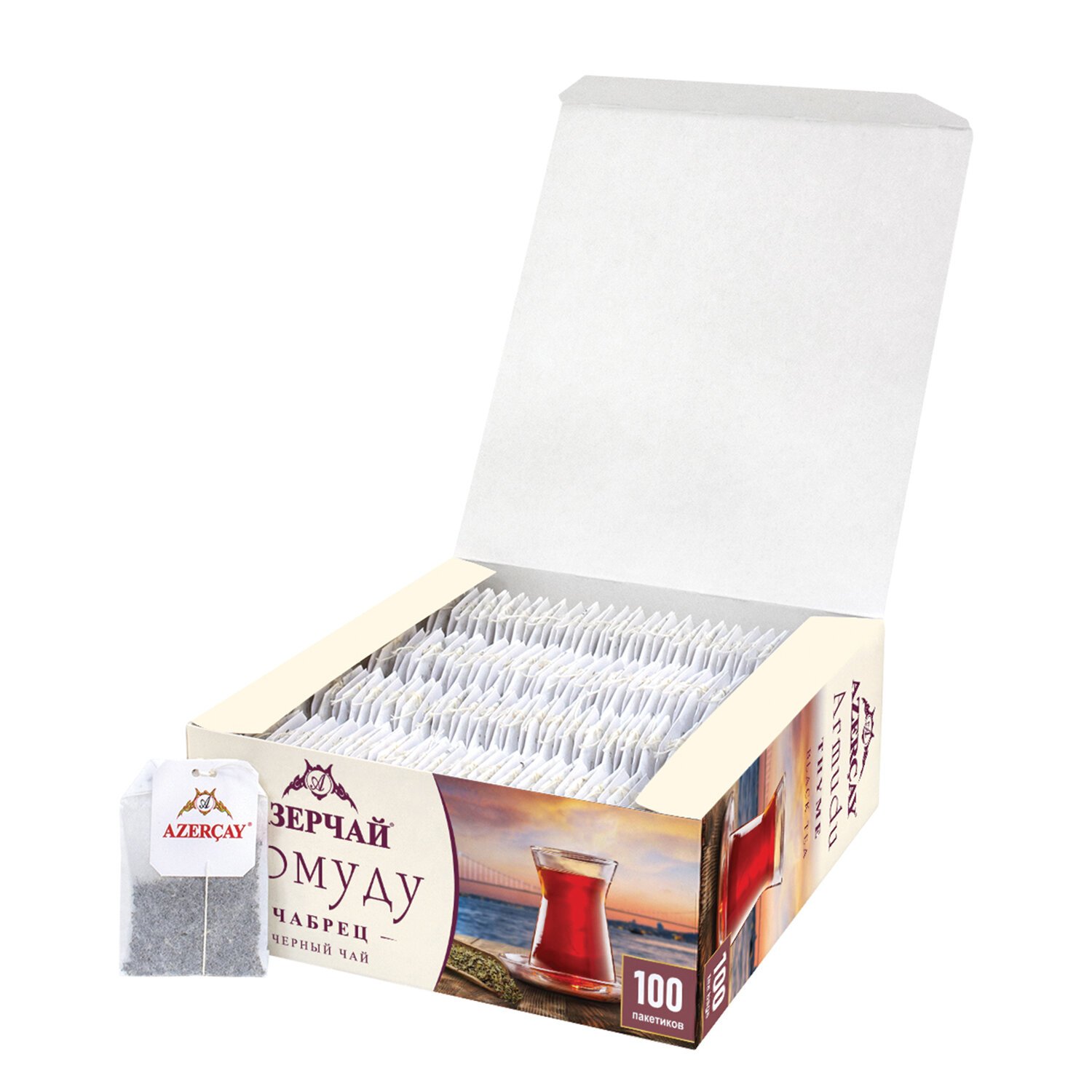 Чай АЗЕРЧАЙ "Армуду" черный с чабрецом, 100 пакетиков по 1,6 г, 420536