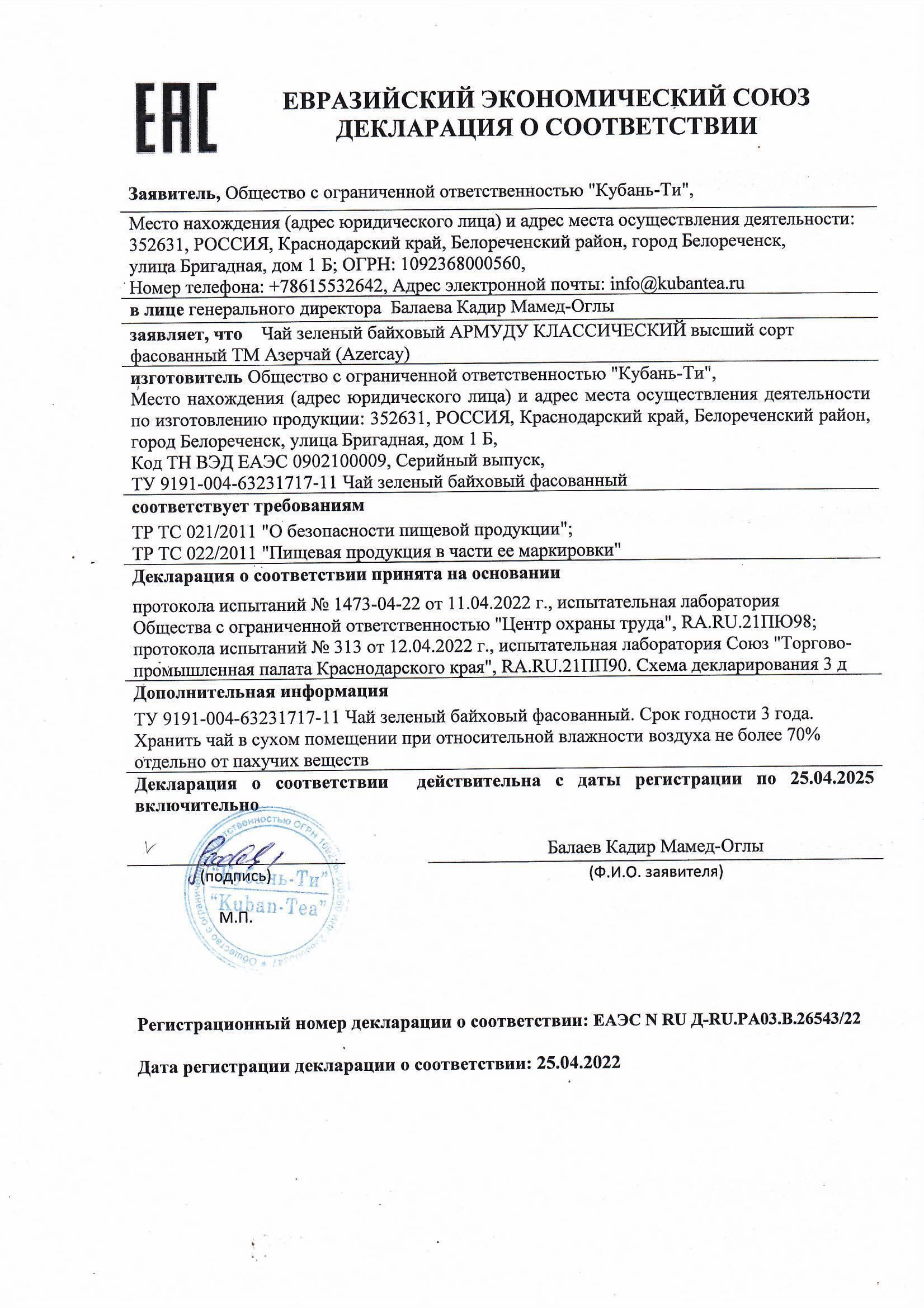 | Серия | АЗЕРЧАЙ |