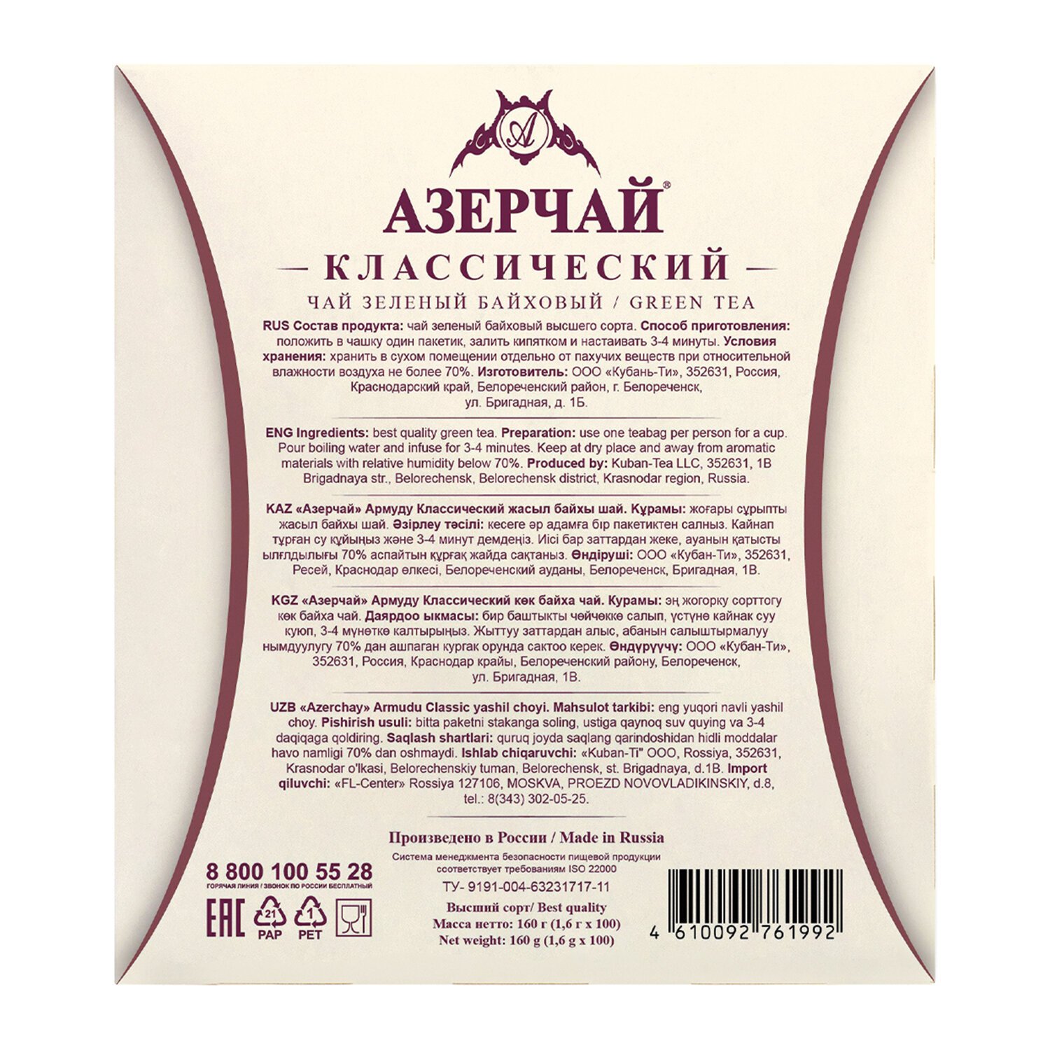 Чай не содержит ГМО, искусственные ароматизаторы, искусственные красители.