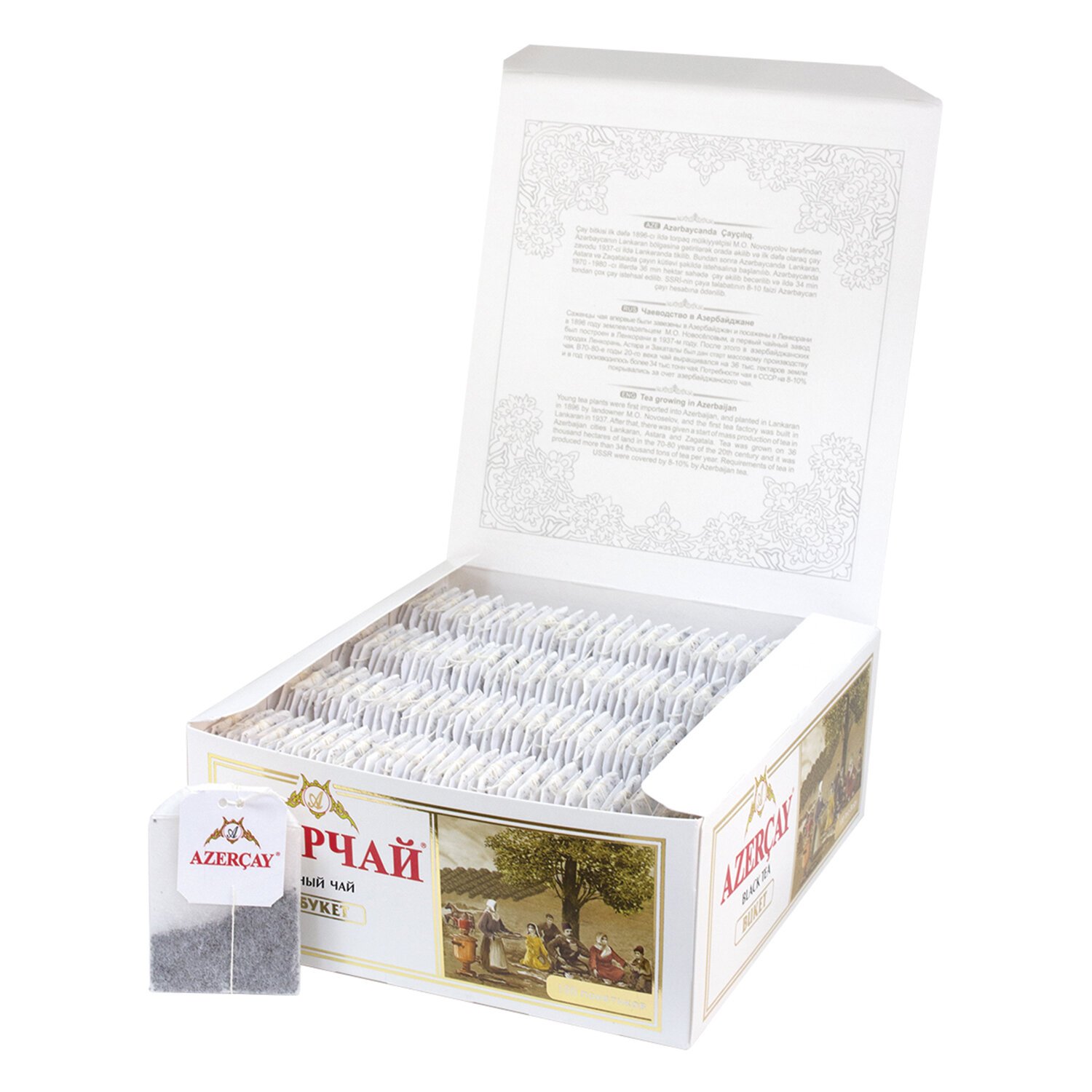 АЗЕРЧАЙ "Букет" – это черный байховый крупнолистовой чай. Восхитительный напиток имеет нежный аромат и приятный терпкий вкус.