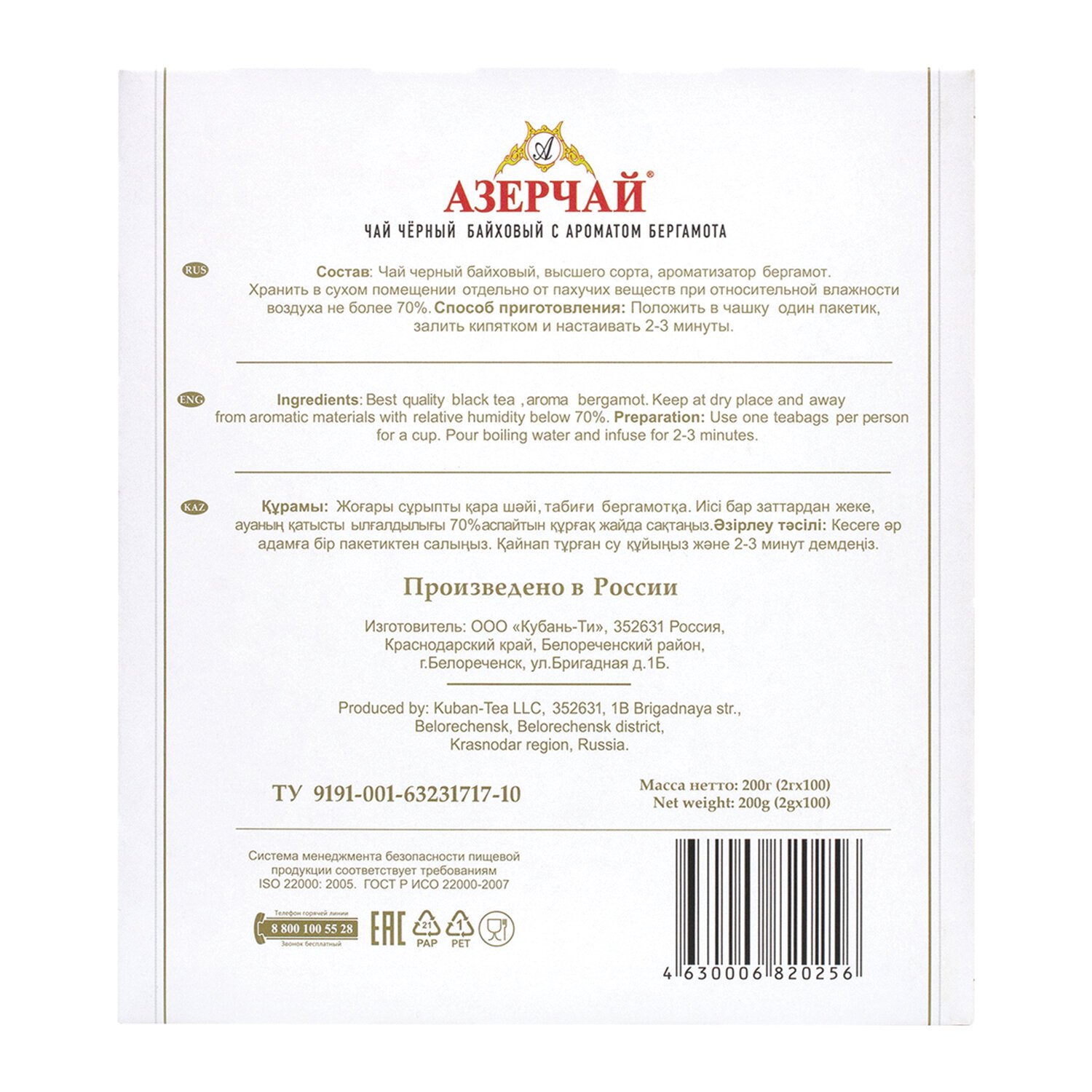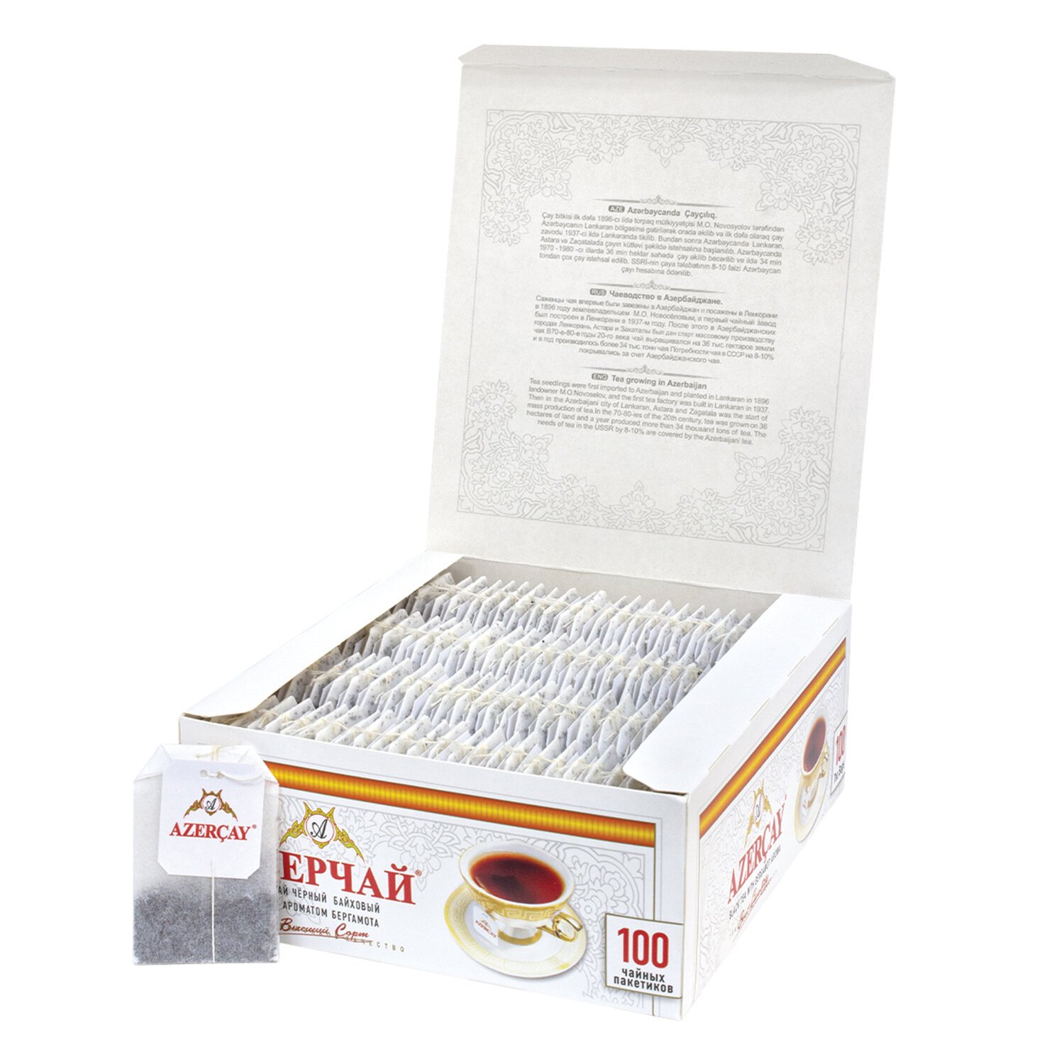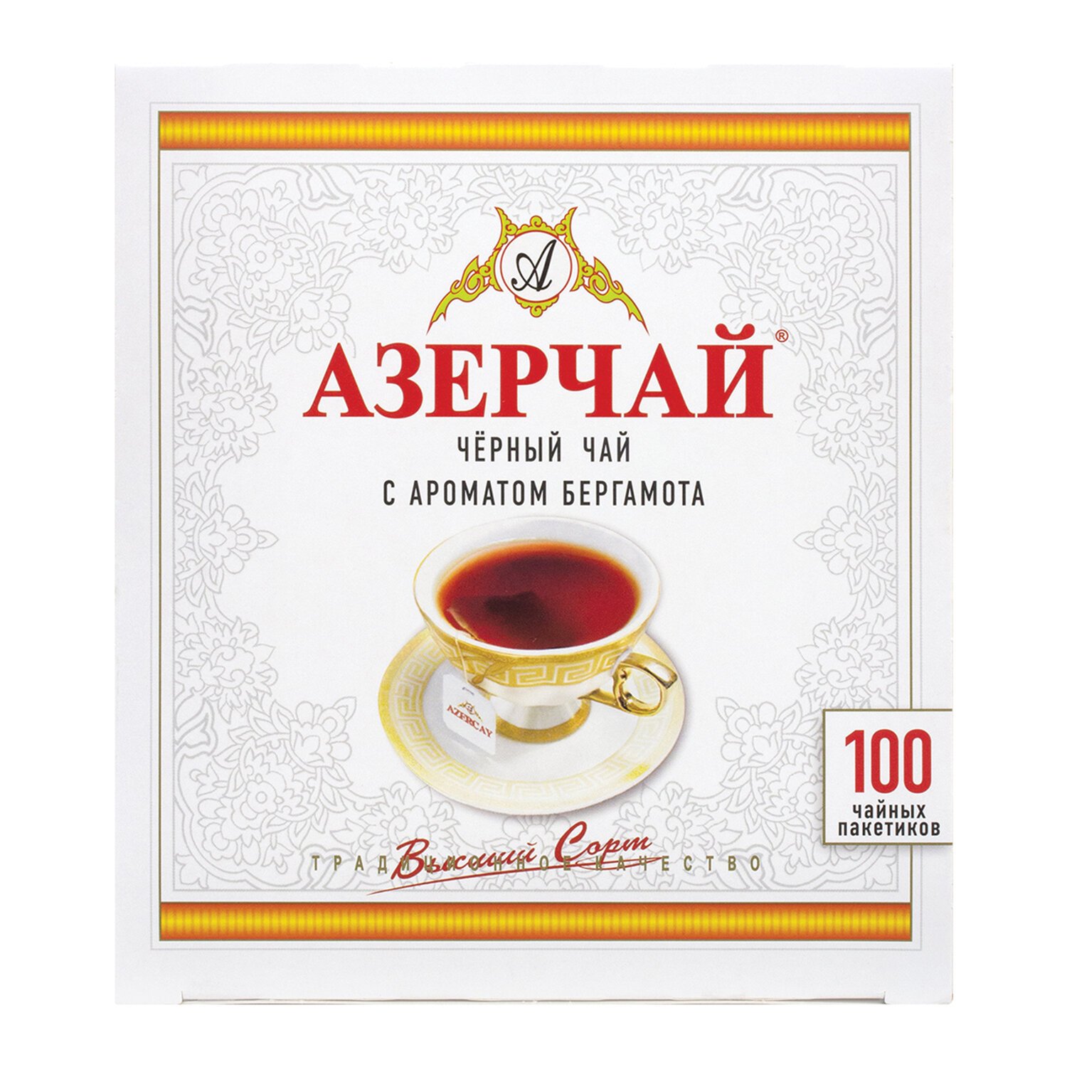 Чай АЗЕРЧАЙ черный с бергамотом, 100 пакетиков по 2 г, 419830