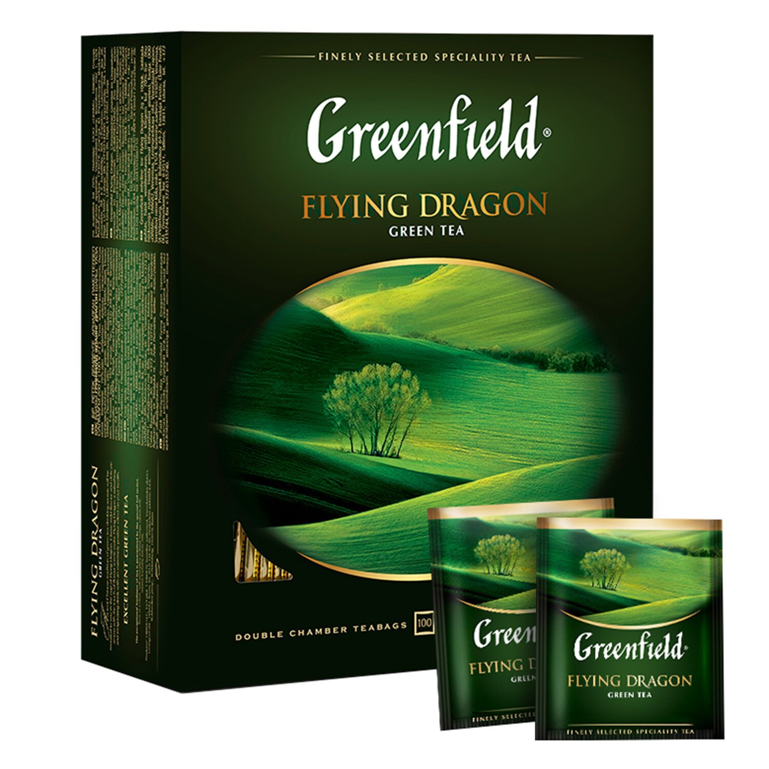 Чай GREENFIELD "Flying Dragon" зеленый, 100 пакетиков в конвертах по 2 г, 0585