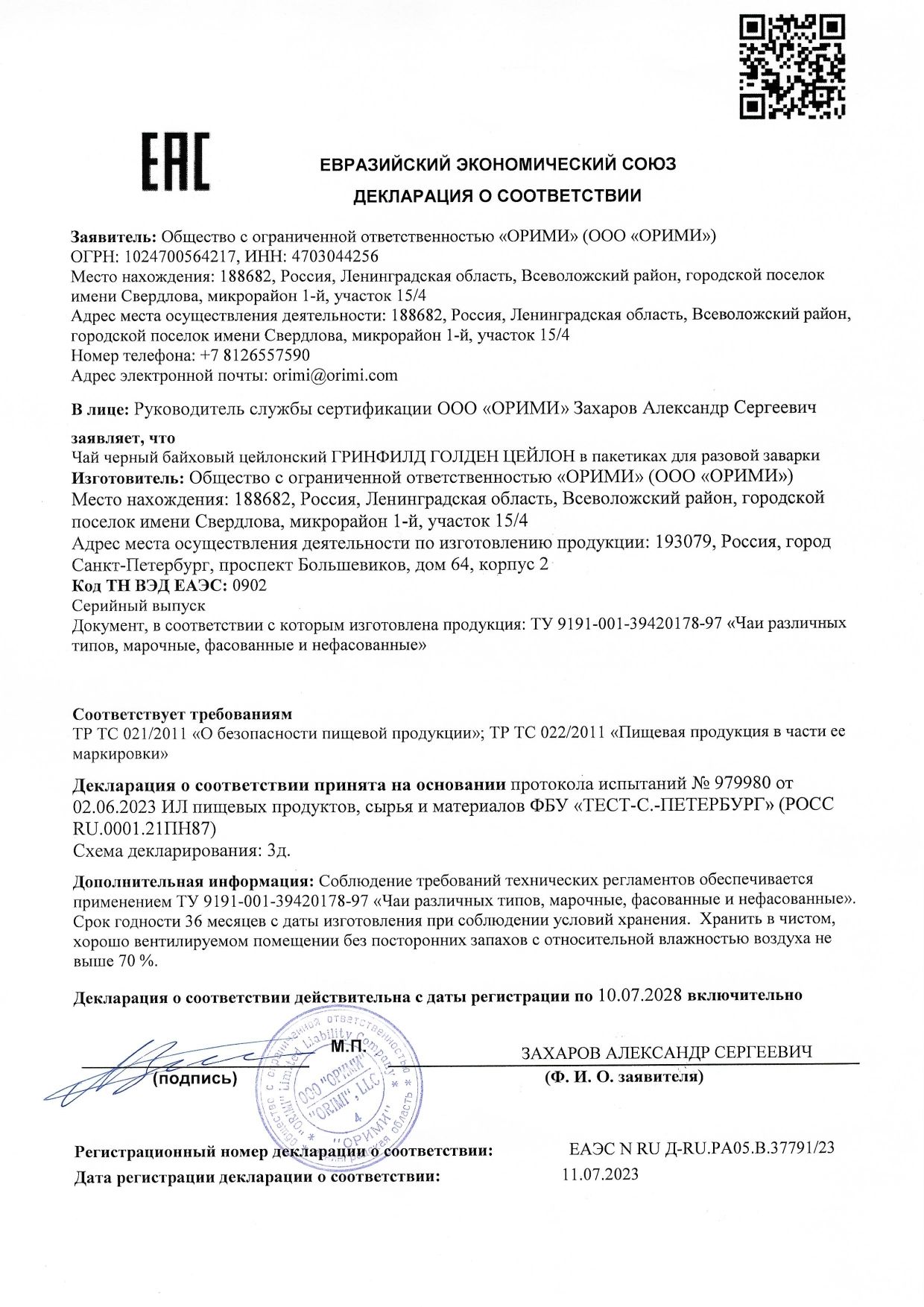 Чай GREENFIELD "Golden Ceylon" черный цейлонский, 25 пакетиков в конвертах по 2 г